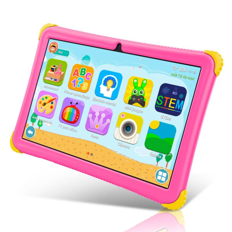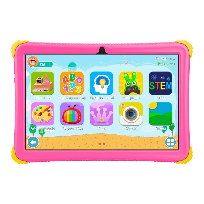 Incluye control parental, juegos preinstalados y un bumper protector resistente que cuida la tablet de golpes y caídas. Además, viene con cargador y cable, lista para disfrutar desde el primer momento.