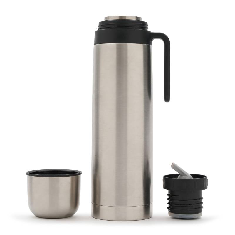 Termo fabricado en doble pared de acero inoxidable 304, un material de alta calidad que asegura durabilidad y resistencia en cualquier ocasión. Su diseño incluye una tapa a rosca, un tapón con pico cebador y una manija ergonómica de 9,5 cm que permite transportarlo cómodamente, convirtiéndolo en el compañero ideal para el día a día o actividades al aire libre. Aprobado por INAL. Libre de BPA. Capacidad 1L