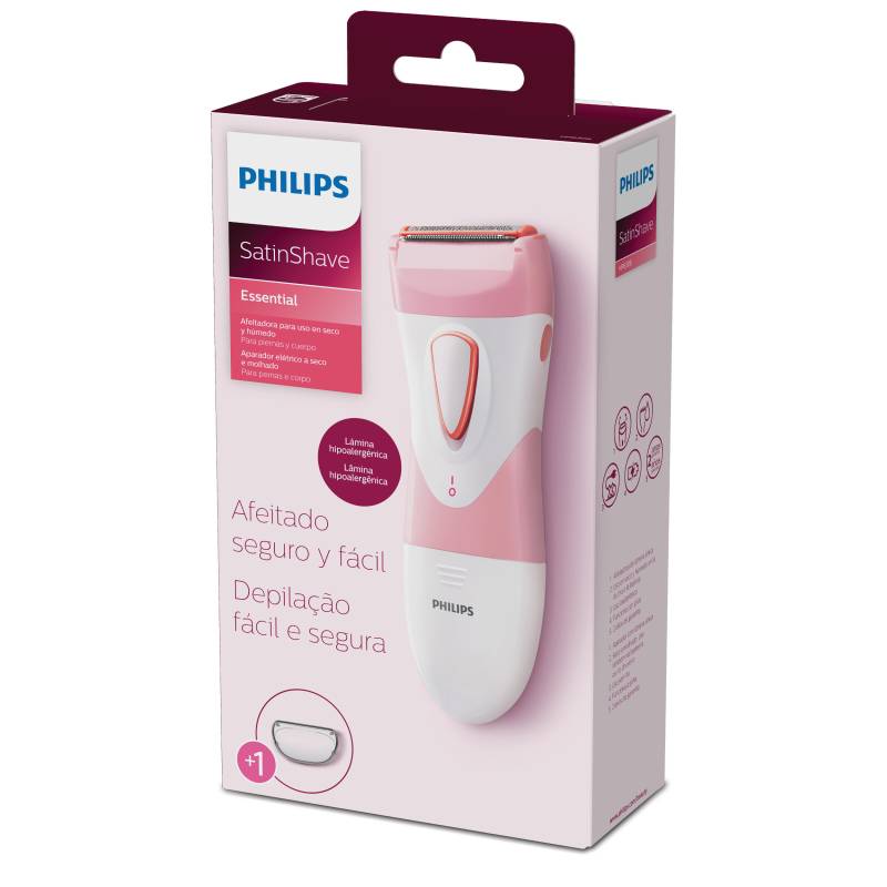 Afeitadora femenina compacta para piernas y cuerpo. Su lámina hipoalergénica evita irritaciones. Ideal para uso en seco y húmedo. Funciona con pilas, lo que permite movilidad y facilidad.