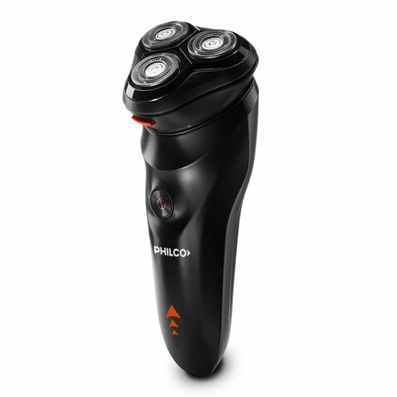 Afeitadora Philco Lithium modelo AE5105. Posee sistema cabezal flotante 360° con recortador de patillas, autonomía 75 minutos, wet & dry.