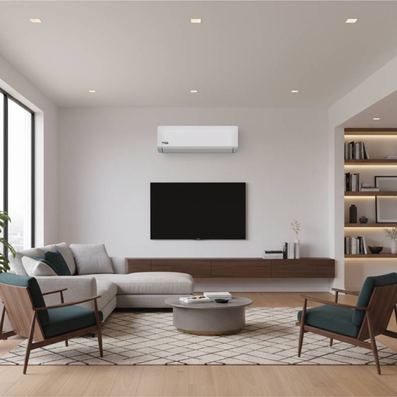 Su diseño moderno y compacto se integra fácilmente en distintos espacios del hogar, mientras que el sistema de filtrado ayuda a mejorar la calidad del aire interior al retener partículas en suspensión. Además, permite un enfriamiento y calefacción rápidos, logrando confort térmico en menos tiempo y manteniéndolo de forma uniforme.