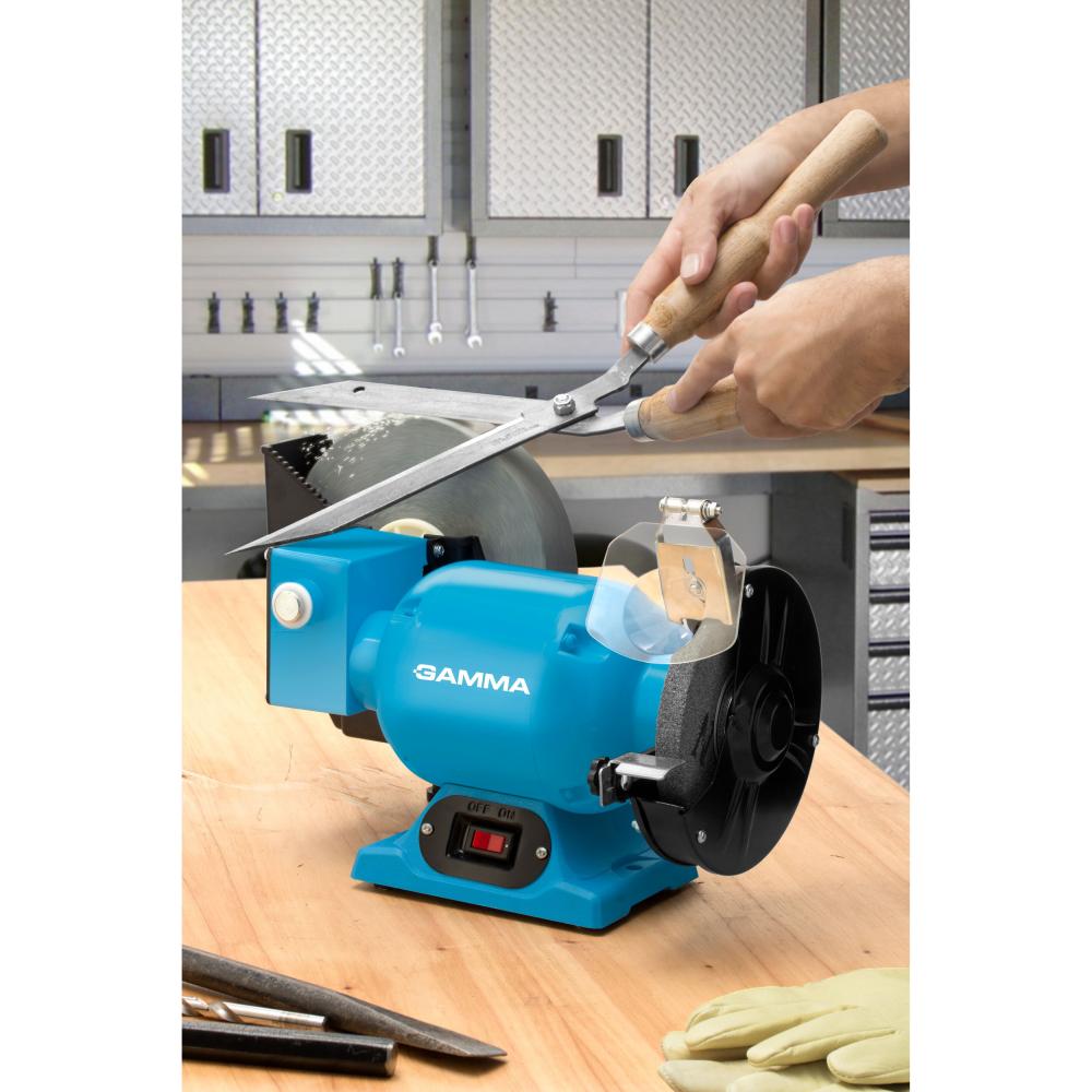 La amoladora de banco combinada con afilador Gamma 1686AR es ideal para talleres y hogares que requieren herramientas versátiles y de alta calidad.