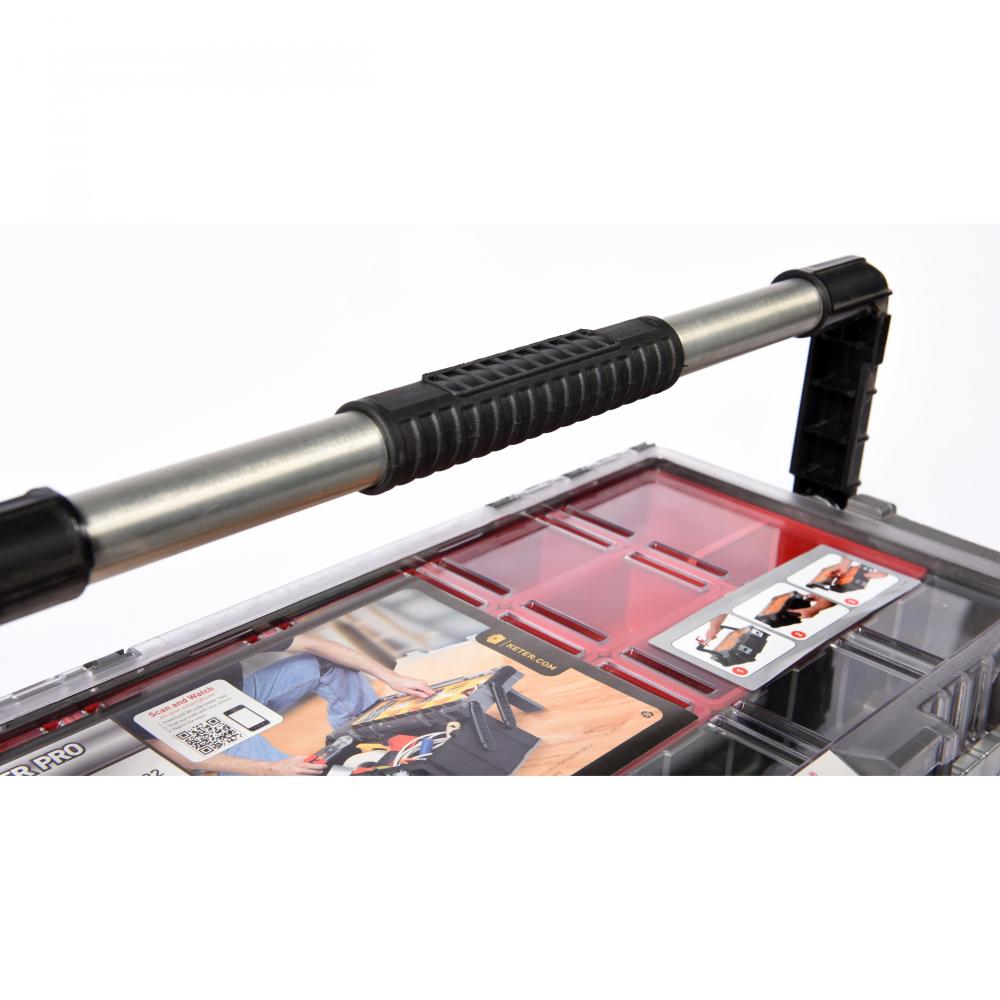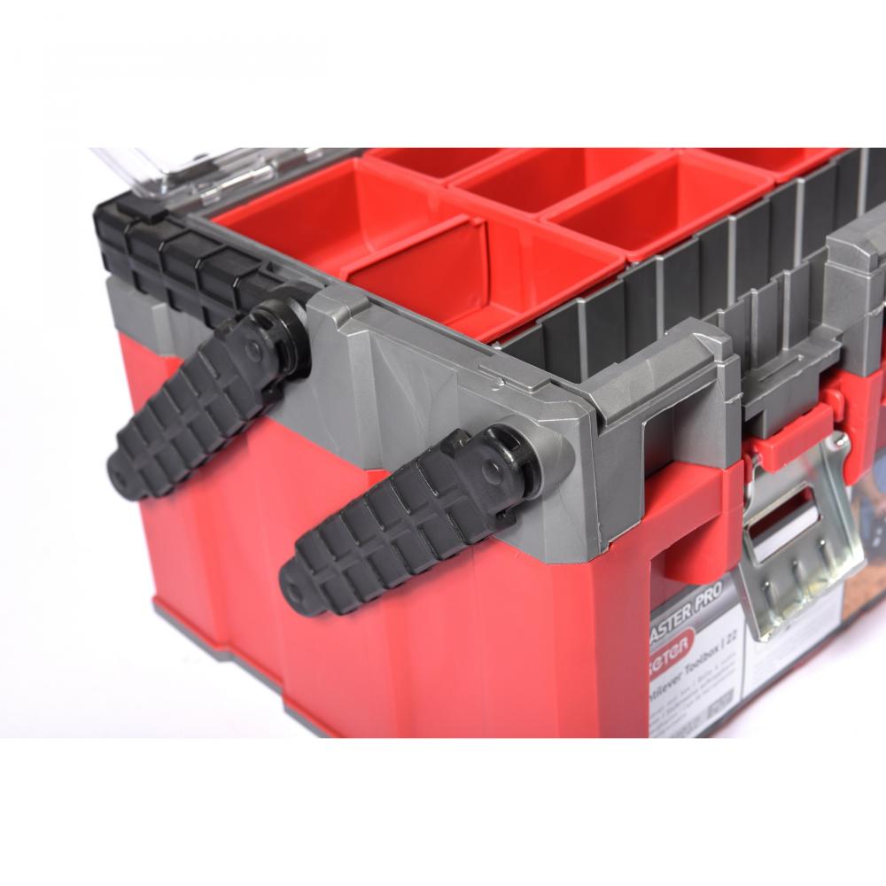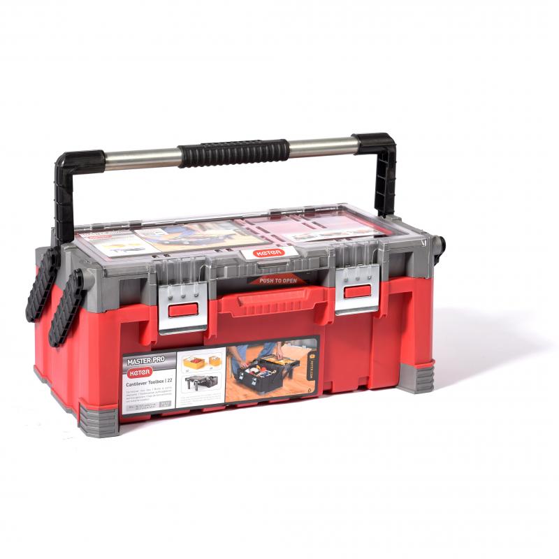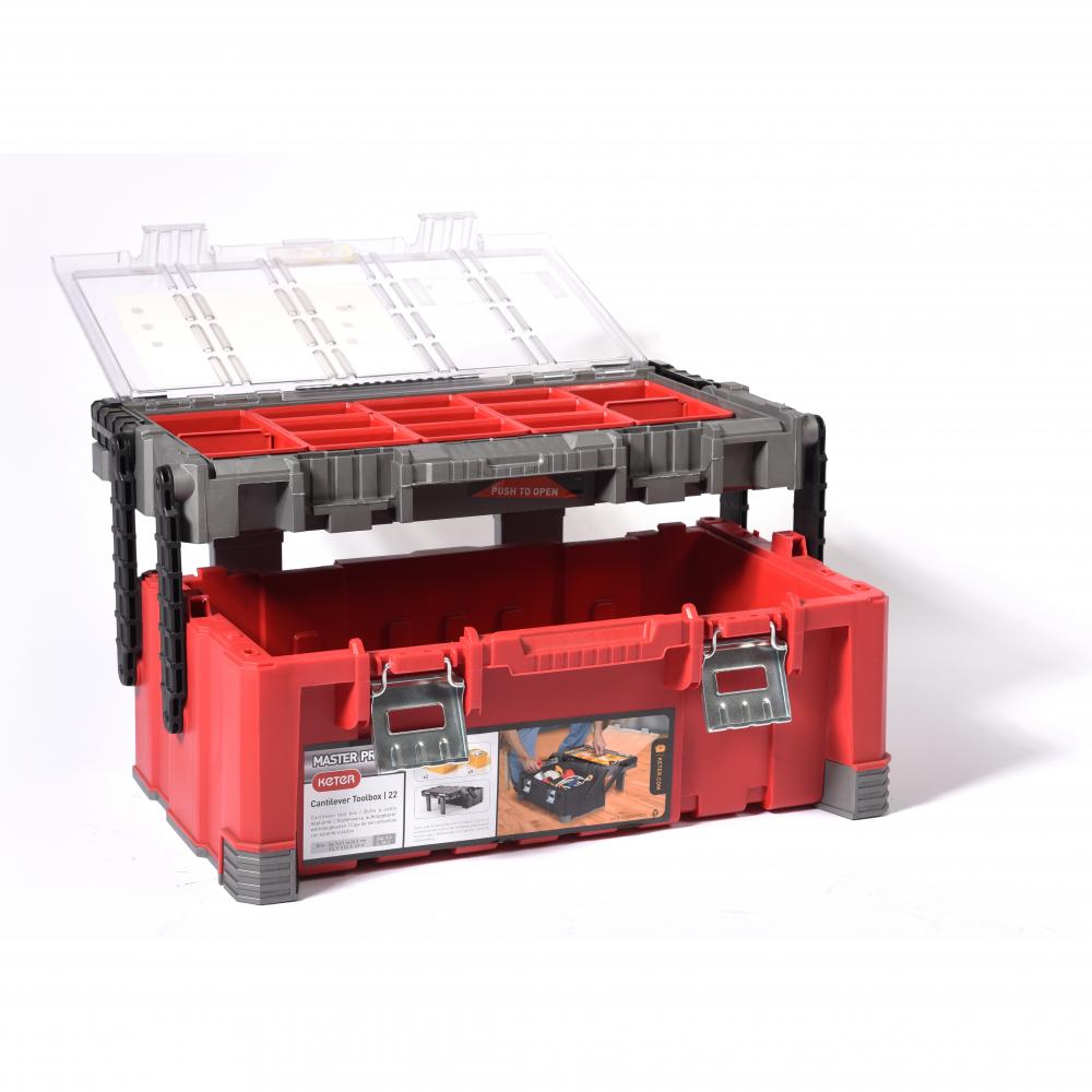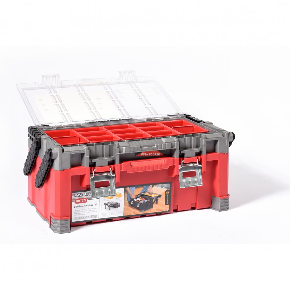 La caja de herramientas organizadora Cantilever de 22" es un artículo imprescindible para profesionales o entusiastas de las manualidades caseras que buscan un organizador confiable para almacenar componentes de tamaño pequeño y mediano. Con 27 compartimentos extraíbles y un sistema voladizo, el organizador mantendrá varios accesorios en perfecto orden. Se puede transportar cómodamente a cualquier lugar gracias a su construcción compacta y al mango de metal resistente con agarre suave.