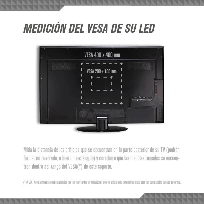 Soporte Basculante Para Led De 26" A 65", Soporta Hasta 30 Kilos, Mov. Vertical 10 Grado, Distancia A La Pared 3 Cm, Vesa 200X200/400X400 Mm