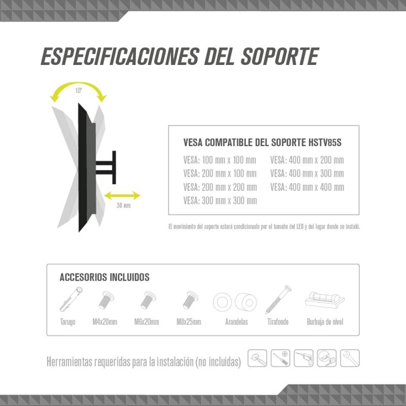 Soporte TV TGW Baculante 26" a 65" HSTV85S