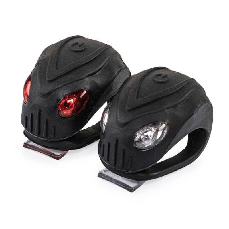 Este set de luces para bicicleta incluye una luz delantera con dos Led blancos y una luz trasera con dos Led rojos, ambas con dos modos de luz (fijo y parpadeante) para una mayor visibilidad y seguridad en tus trayectos nocturnos. Funcionan con pilas de botón y son fáciles de instalar gracias a su soporte de goma universal, sin necesidad de herramientas. Con un peso de solo 38 g, son ligeras y eficaces para asegurar una conducción segura. Ideal para todo tipo de bicicletas.