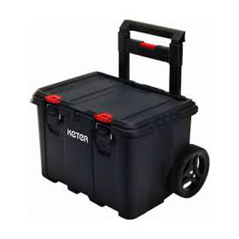 El carro inferior con manija telescópica y ruedas de 7 pulgadas es excelente para mover sus herramientas más grandes de un lugar a otro.