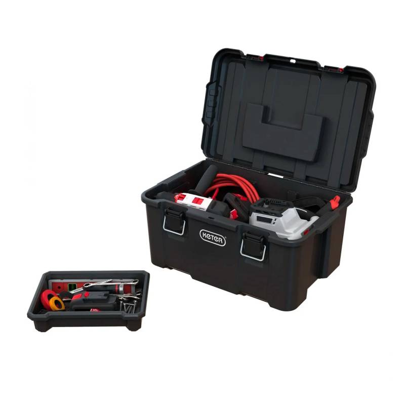 La caja de herramientas del medio ofrece opciones de almacenamiento versátiles y le permite transportar fácilmente sus herramientas.