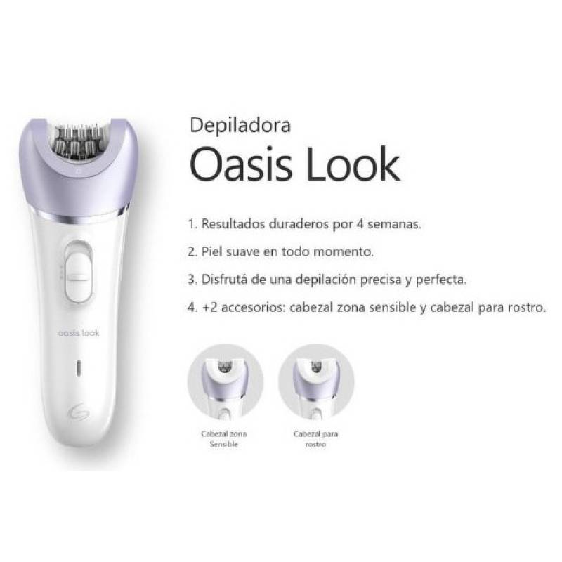 Experimenta un oasis en tu piel con la nueva depiladora Oasis Look. Para una depilación más rápida y precisa. Resultados increíbles para mantener tu piel hasta 4 semanas más suave y perfecta. Oasis se adapta a diferentes necesidades para disfrutar de una rutina de belleza completa. Depilación duradera con total facilidad y sin dolor.