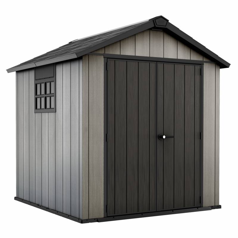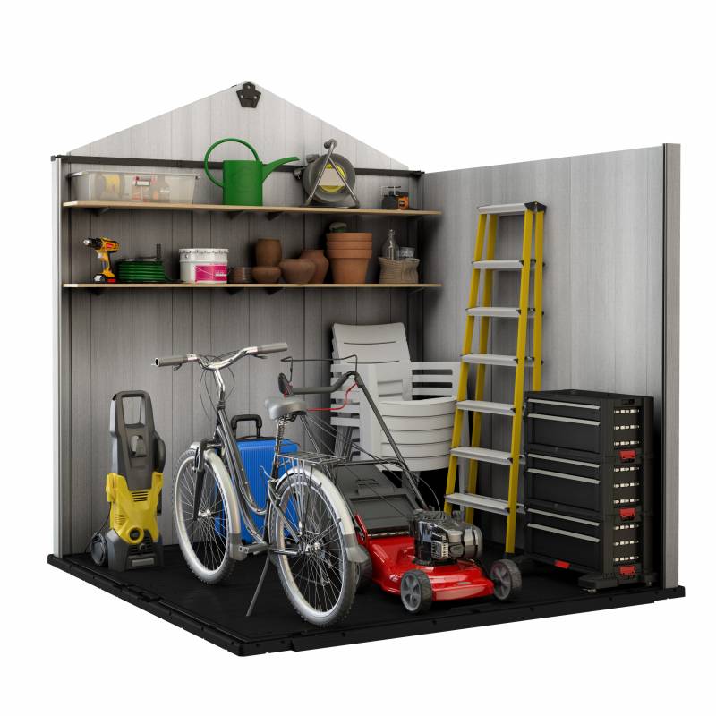 Cobertizo súper resistente y duradero con una estructura de doble pared, construcción machihembrada y refuerzo de acero Las innovadoras paredes Duotech le dan una hermosa textura de madera desgastada con toda la durabilidad de la resina. Claraboya y ventana para dejar entrar la luz natural y ventilación para la circulación del aire Las paredes únicas de Duotech se pueden pintar y perforar fácilmente para personalizar fácilmente su cobertizo de almacenamiento.