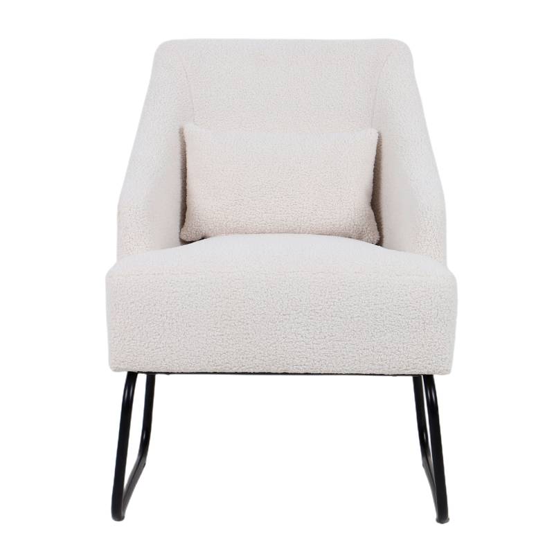 Facilidad de mantenimiento y versatilidad El tejido Boucle es fácil de limpiar, lo que es especialmente importante en hogares con niños o mascotas. Su color blanco aporta luminosidad a cualquier ambiente, y su diseño versátil permite integrarlo en diferentes espacios, desde un salón moderno hasta una oficina acogedora. Aunque requiere armado, el proceso es sencillo y rápido, lo que permite disfrutar del sillón en poco tiempo.