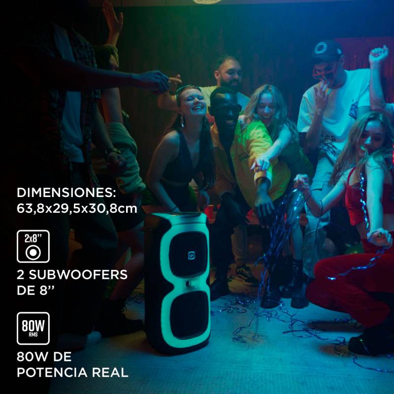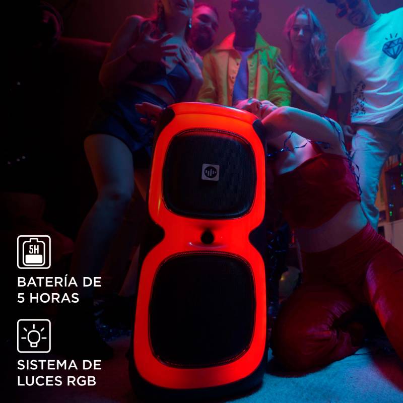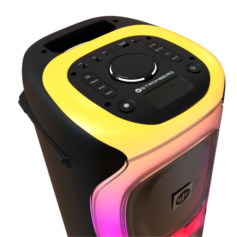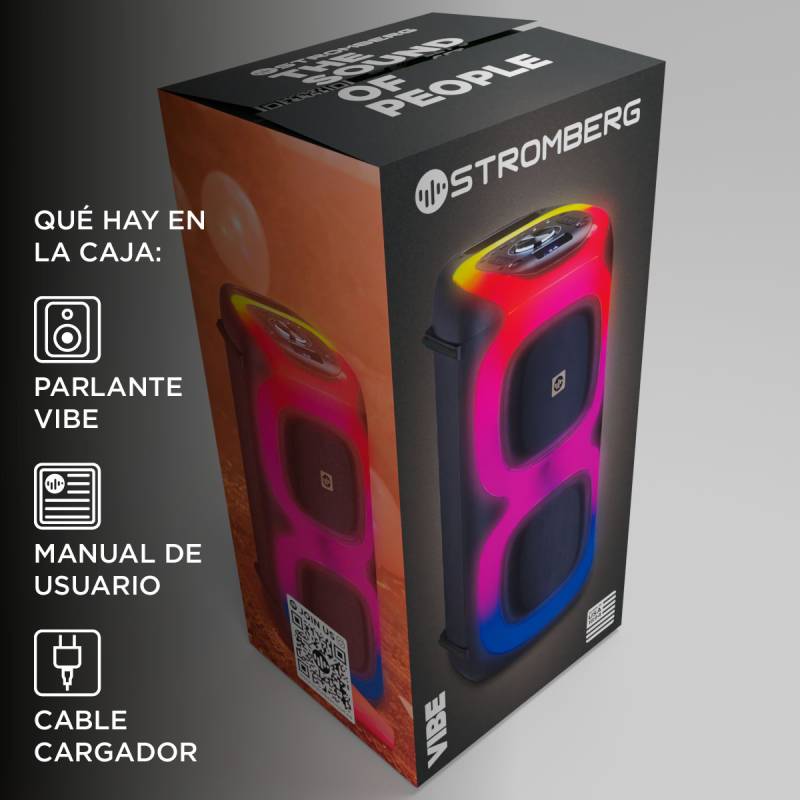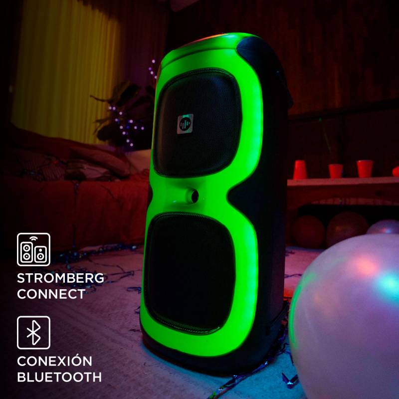 Con el parlante portátil stromberg vibe, la música se convierte en la guía de tus fiestas, creando un ambiente lleno de energía y vibraciones positivas.