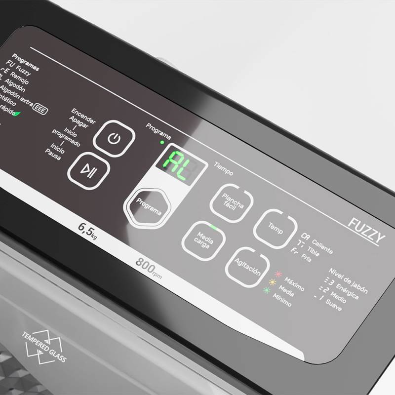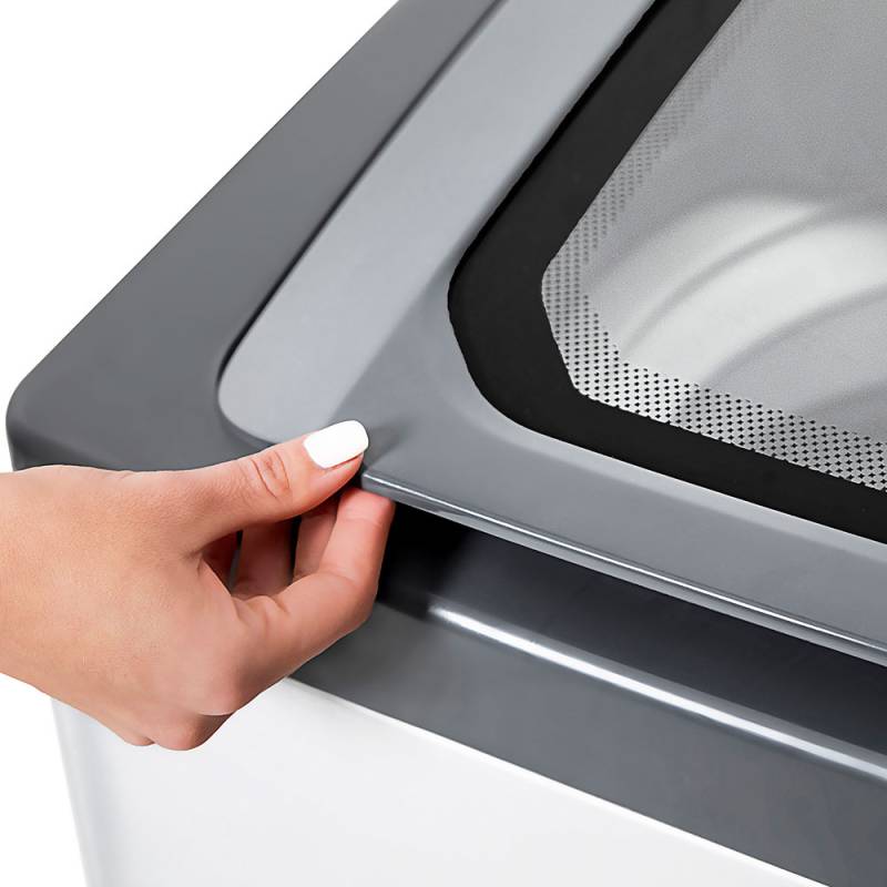 Bloqueo automático de puerta, Jabonera central con Jet Spray optimizado, Entrada de agua fría y caliente, Patas niveladoras ajustables, Filtro atrapa pelusas y Tapa de vidrio