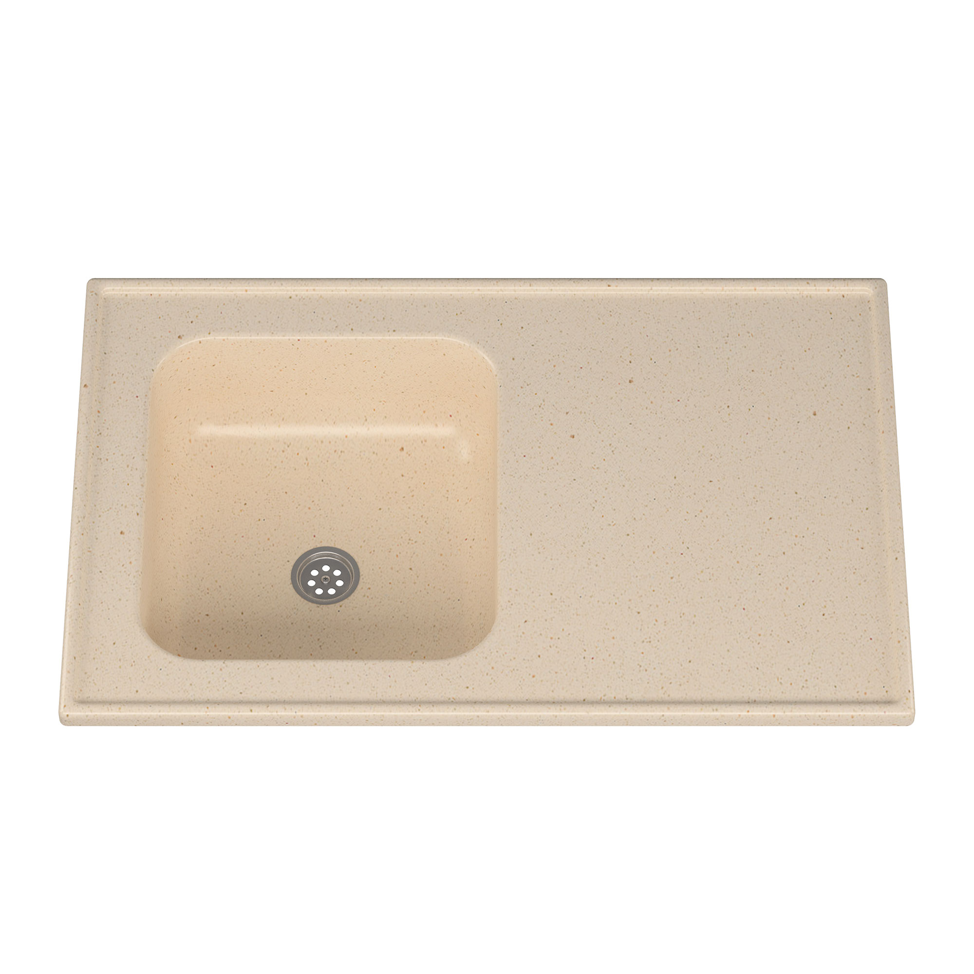 Mesada de Cocina de Mármol Sintético, sin zocalo, bacha integral.