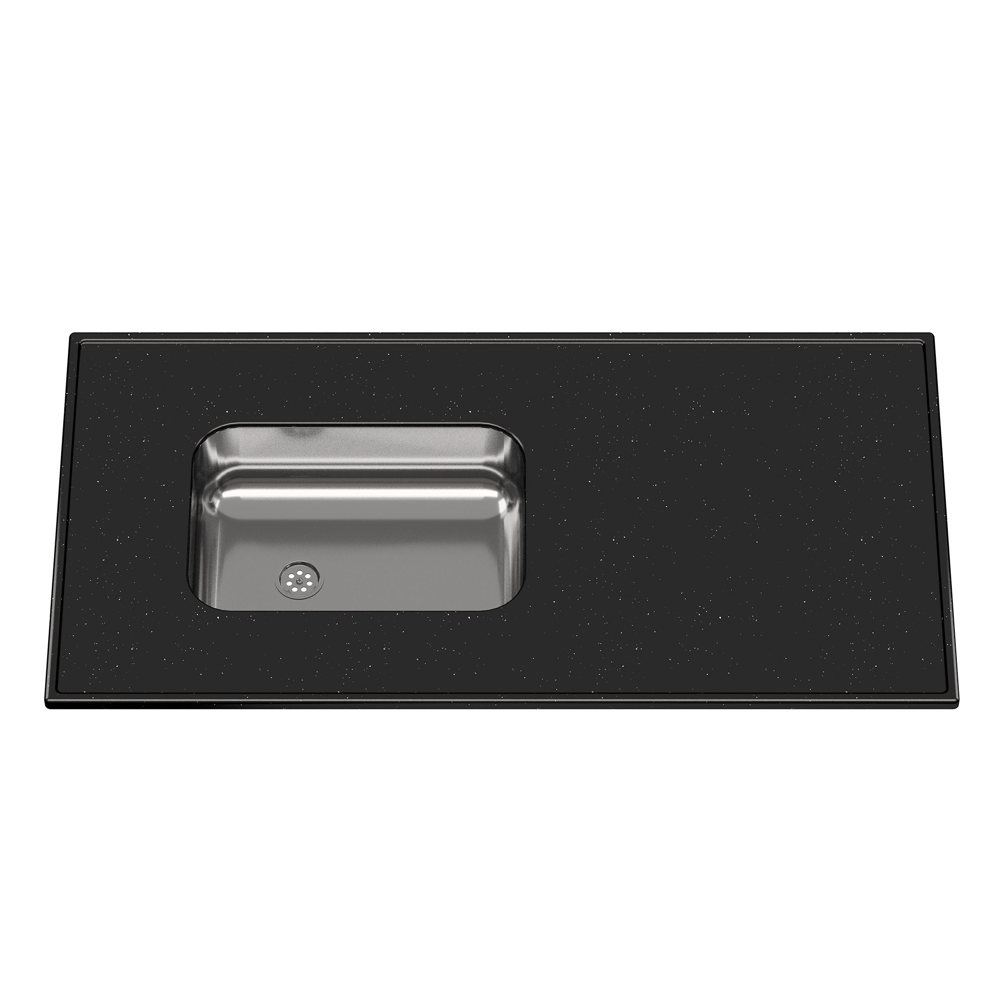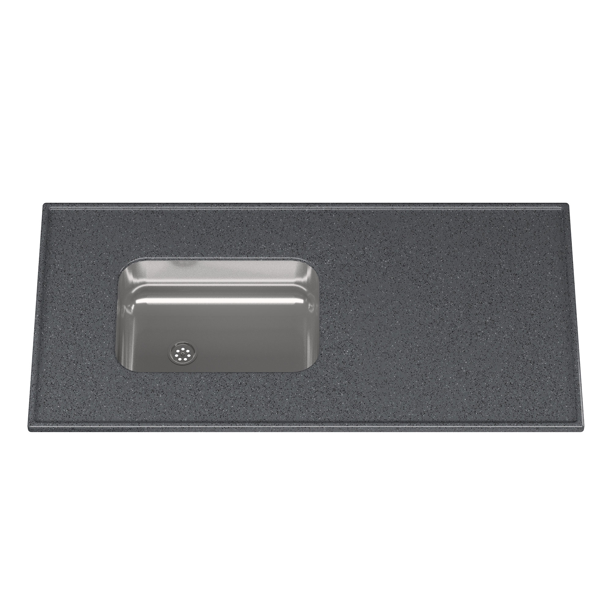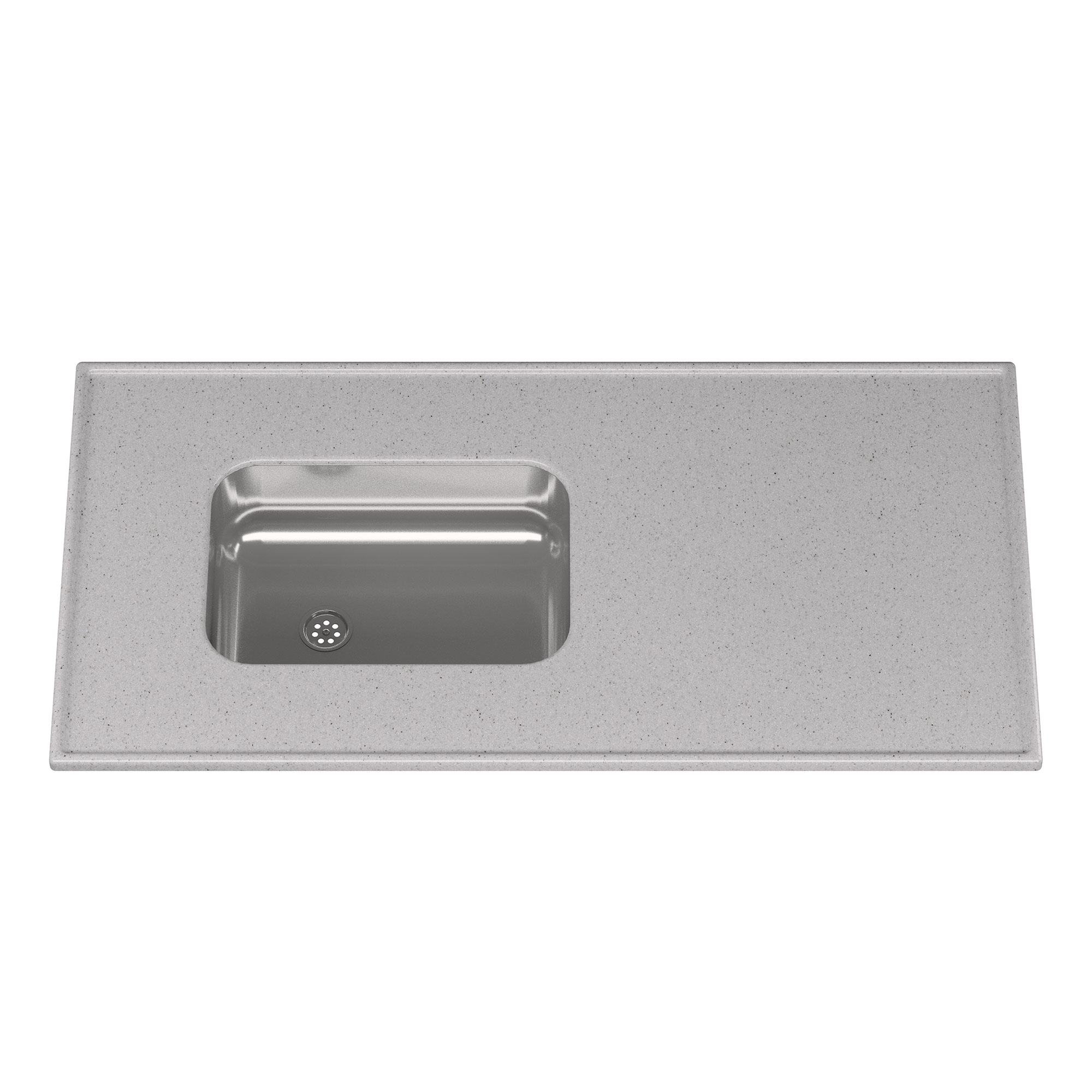 Mesada de Cocina de Mármol Sintético, sin zócalo, bacha de acero inoxidable.