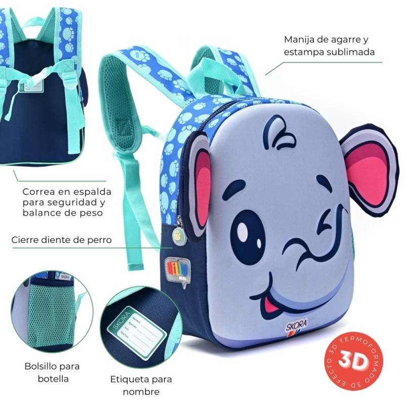 Mochila infantil termo sellada de 12" figura de elefante con estampa sublimada.