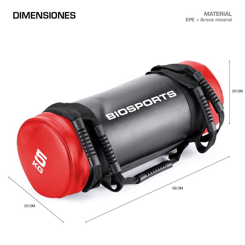 Core Bag 5 Kg Biosports Características Principales: - Material de Alta Resistencia: Confeccionada en lona de alta resistencia, esta core bag está diseñada para durar, soportando el impacto de tus entrenamientos más intensivos. La doble costura reforzada garantiza una durabilidad superior. - Diseño para el Impacto: Diseñada para soportar el impacto, esta core bag es ideal para ejercicios que requieren lanzamientos, giros y movimientos de alta energía, asegurando que mantenga su forma y funcionalidad. - Múltiples Agarres: Equipada con cinco agarres reforzados, esta core bag te ofrece una gran variedad de opciones de sujeción. Los agarres están estratégicamente colocados para permitir una amplia gama de ejercicios, proporcionando versatilidad y comodidad. - Dimensiones del Producto: Con un largo de 58 cm y un diámetro de 20 cm, la core bag está diseñada para ser manejable y práctica, permitiéndote realizar movimientos fluidos y controlados.