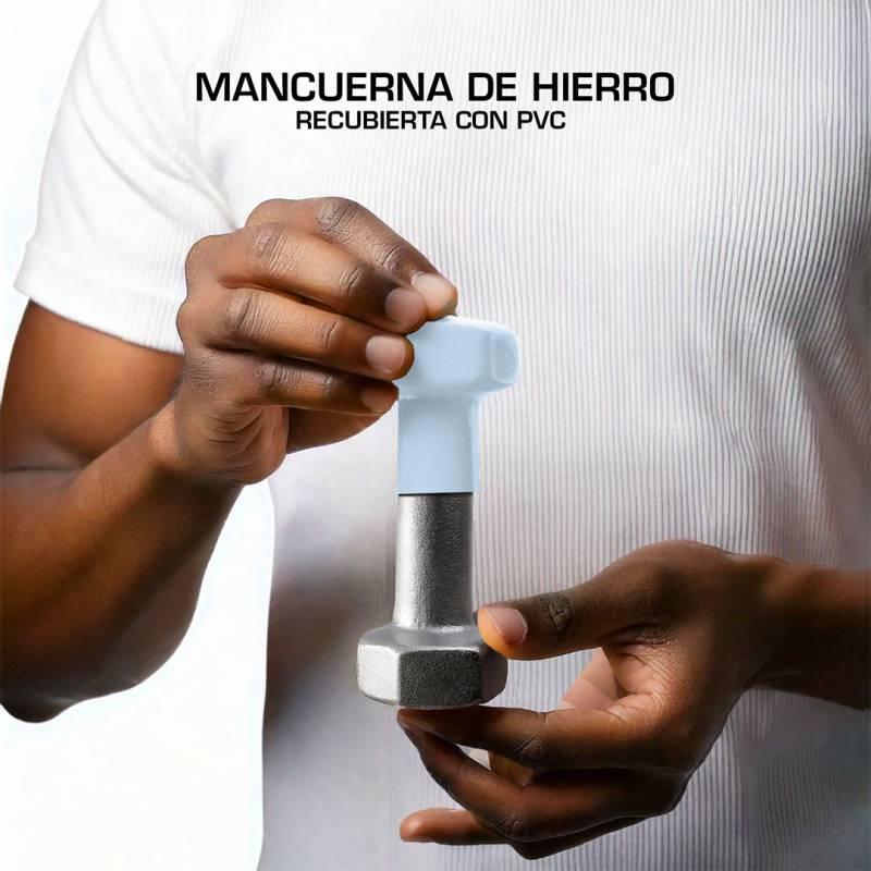 - Mancuernas Metálicas Cubiertas con Neopreno: Las mancuernas están fabricadas en metal y cubiertas con neopreno, ofreciendo durabilidad y un tacto suave que protege tus manos durante el uso.