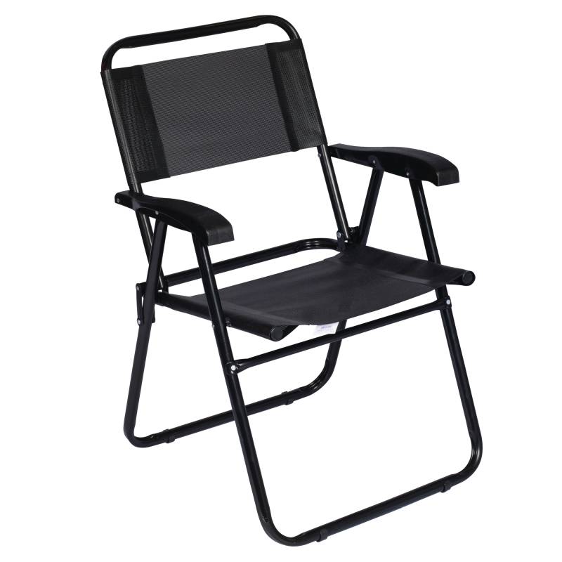 Silla Alta Plegable Mor - Estructura en tubo de acero con acabado de pintura en polvo epoxi negra - Partes plásticas en polipropileno - Tela 100% poliéster - Soporta hasta 120 kg