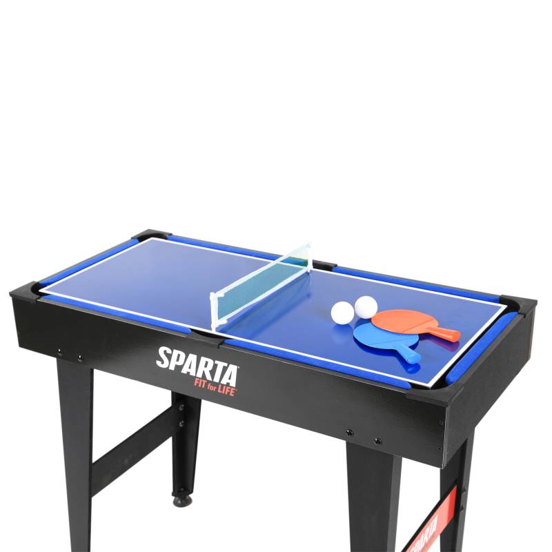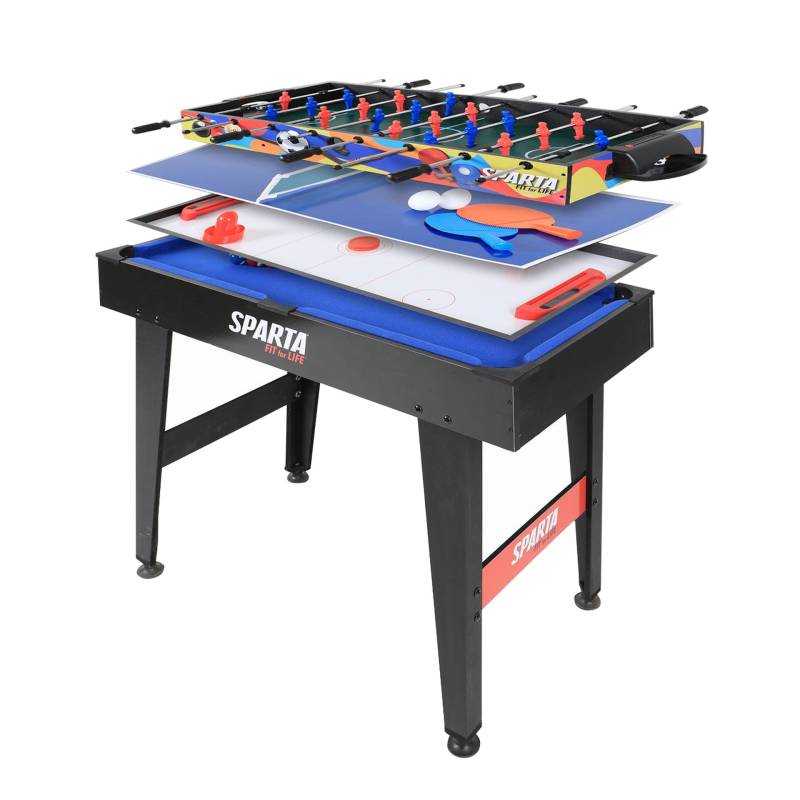 Incluye: Paletas y pelota de ping pong, pads y tejo para Hockey, pelota para metegol, bastones y pelotas para el Billar
