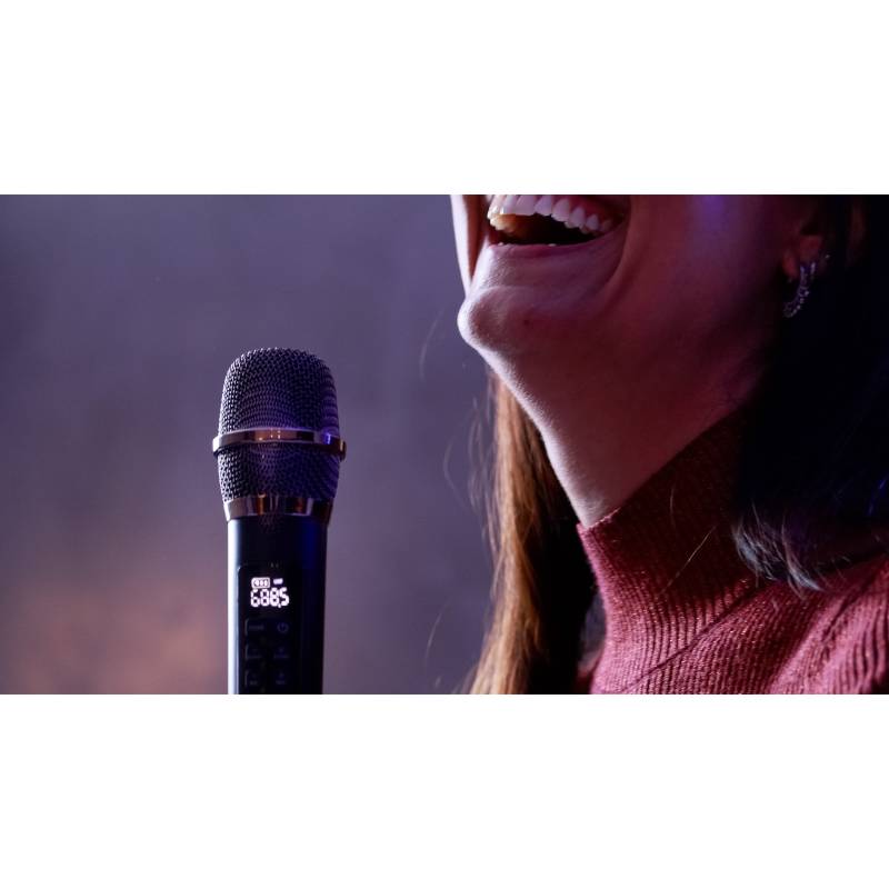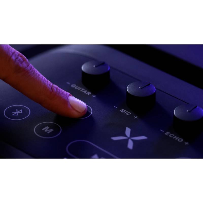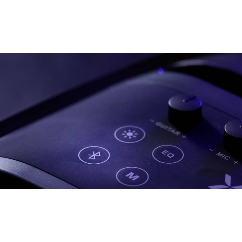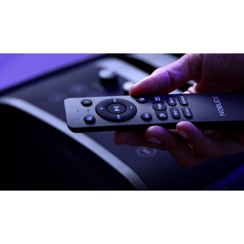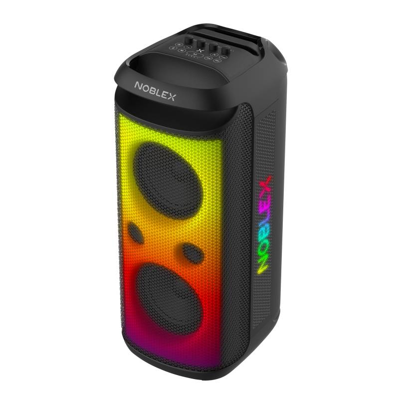 -Potencia 9800W -Resistente al agua: IPX4 - Doble woofer 8" - FULL LED - Noblex Party - Batería recargable - Micrófono incluído -Entrada para Guitarra -Entrada para Micrófono Karaoke -Entrada Auxiliar Line In -Pantalla LED para control de funci
