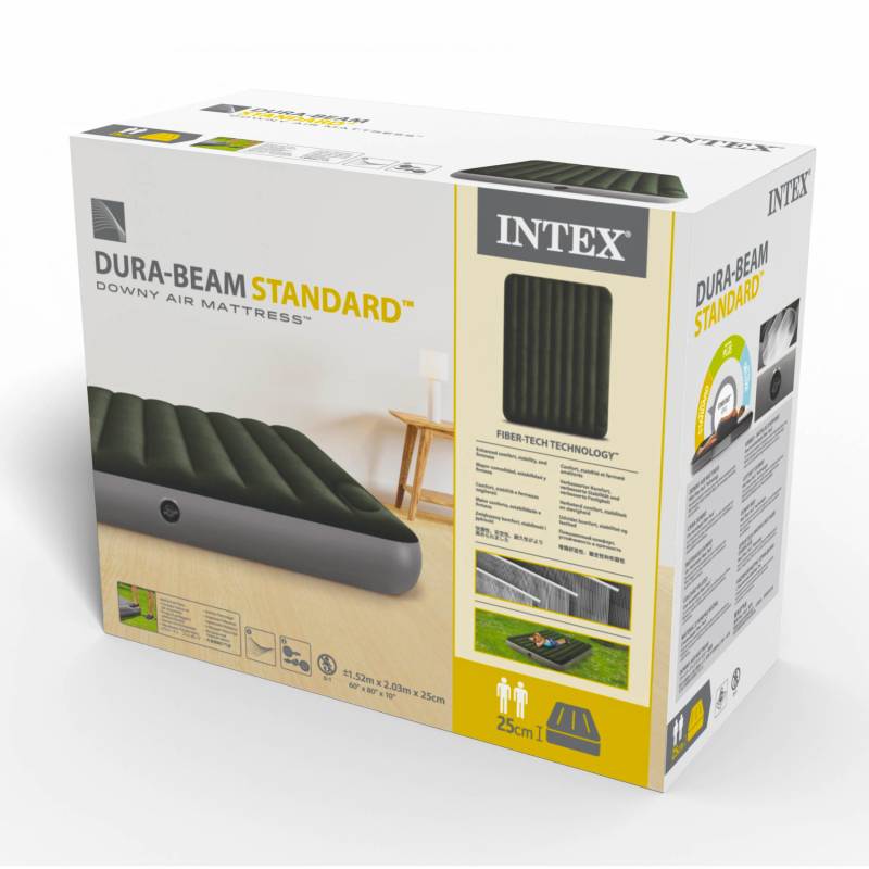 TECNOLOGÍA FIBER-TECH Resistente y liviano Superficie superior aterciopelada de calidad probada con laterales y base de vinilo Válvula 2 en 1 de apertura extra ancha para un inflado y desinflado rápido Incluye Inflador
