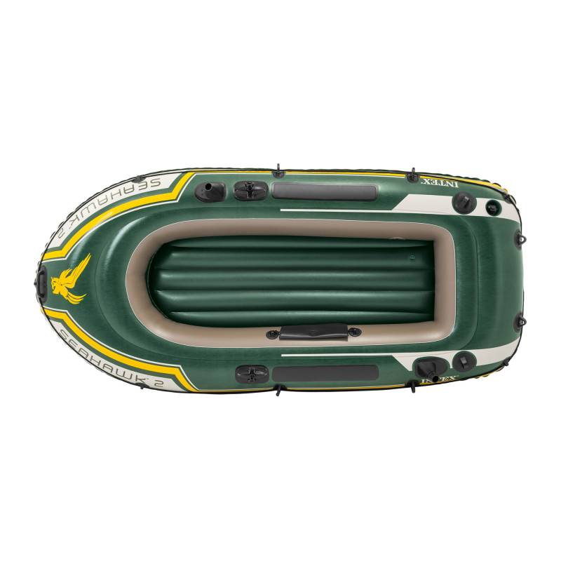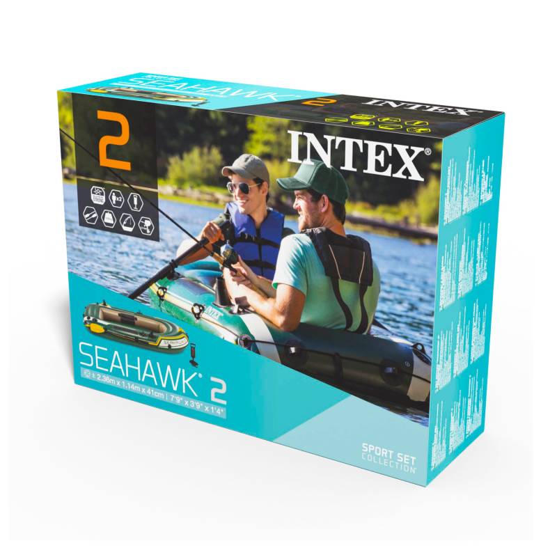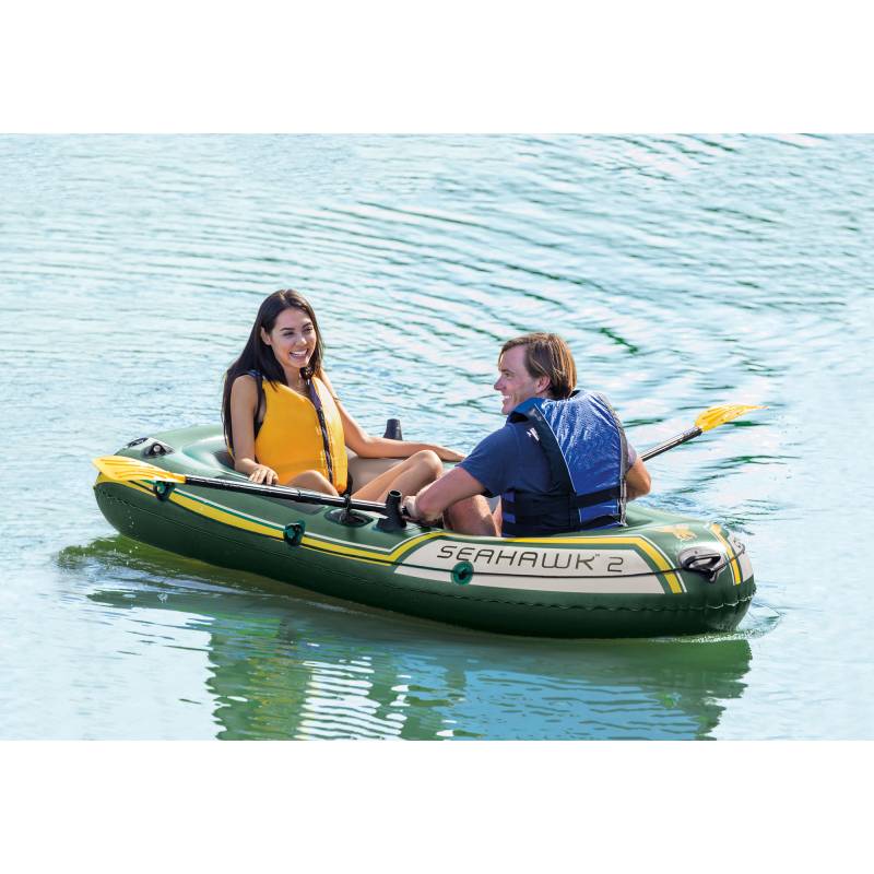Tiene 3 cámaras de aire independientes para que se mantengan siempre a flote. Fabricado en vinilo resistente para mayor comodidad. Incluye: remos, soporte para estos, parches de reparación, inflador y bolsa para herramientas. Incorpora: cuerda de sujeción, asa en la proa para transportarlo fácilmente y soporte para cañas de pescar y para motor.