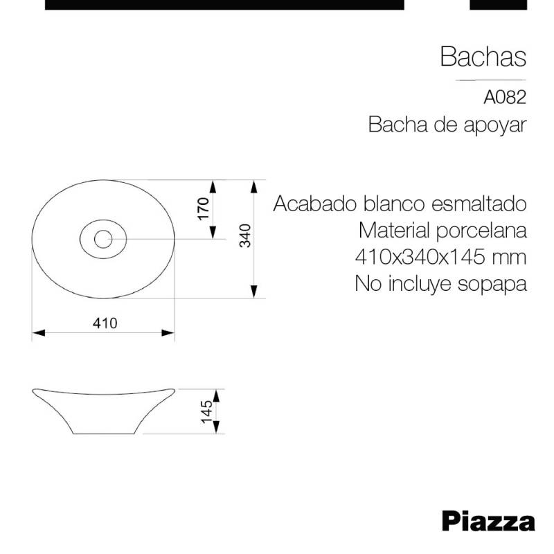 Bacha Apoyo Ovalada A082 Piazza Lavatorio Pileta Baño (A082) Innovación en griferías de alta calidad, diseño y tecnología No incluye sopapa