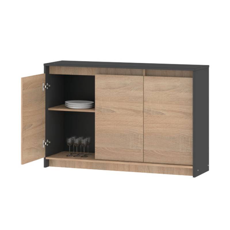 Bahiut Dielfe 3 Puertas 130 Cm Imagina un mueble que no solo complemente tu espacio, sino que lo transforme por completo. Nuestro exclusivo vajillero no es solo una pieza funcional; es un verdadero protagonista de estilo y elegancia en cualquier hogar. Con un diseño contemporáneo que combina líneas limpias y acabados de calidad.