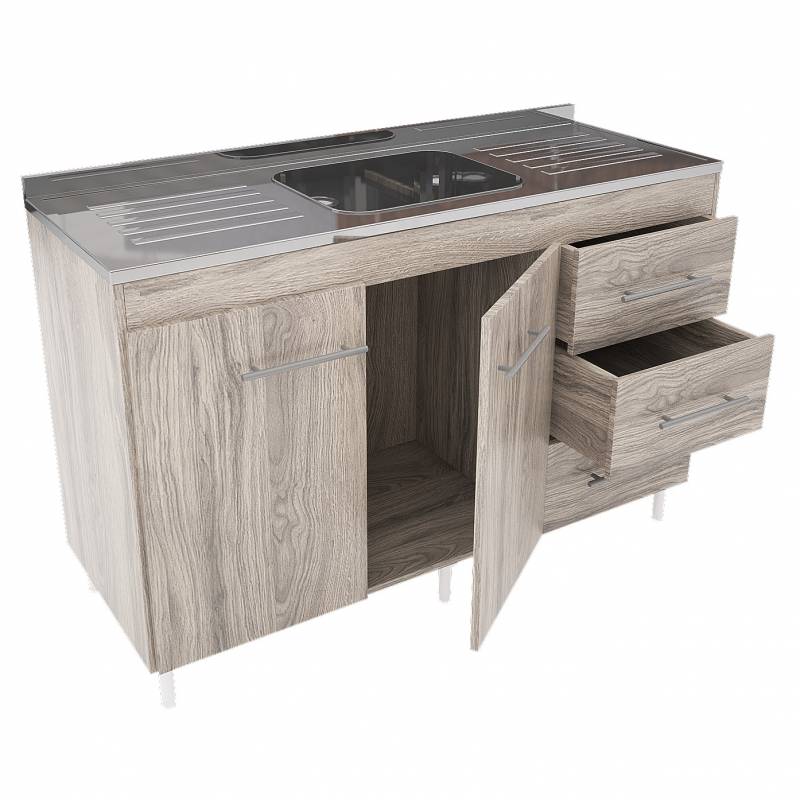 Bajo mesada con 3 cajones, 2 puertas y 1 estante.