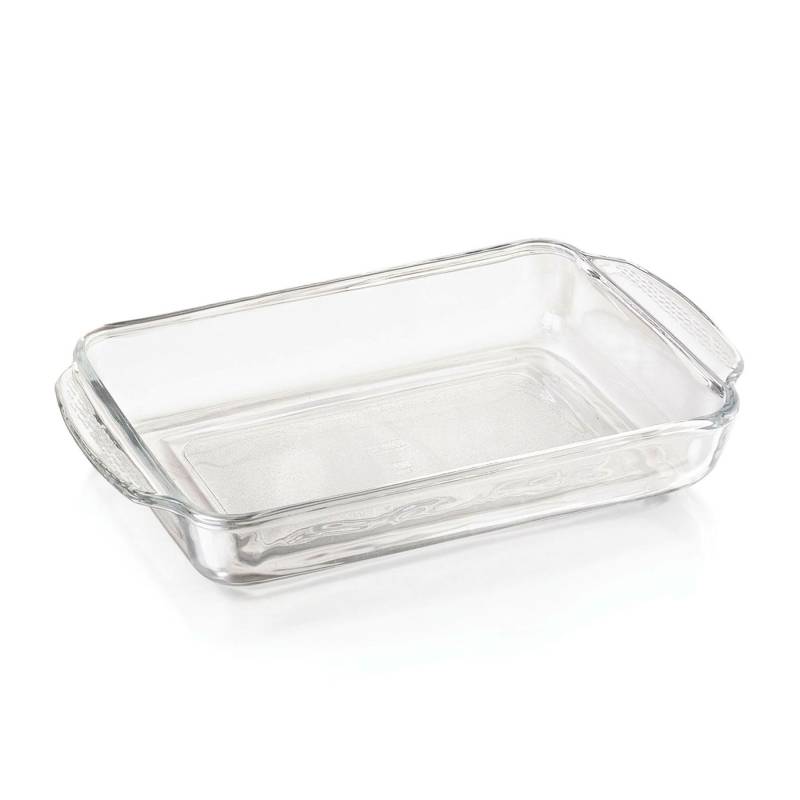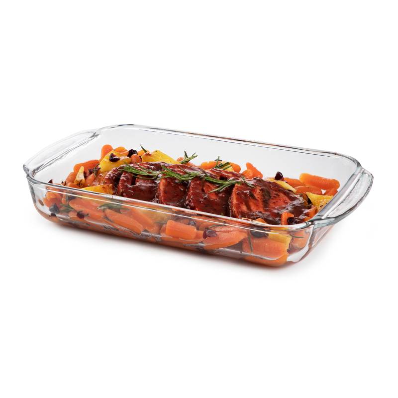 Bandeja rectangular mediana de vidrio "Baker´s Basics" con capacidad de 2,50 litros. Ideal y práctica para resolver de una sola vez la cocción de sus comidas y la conservación de estas ya listas para presentar en su mesa.