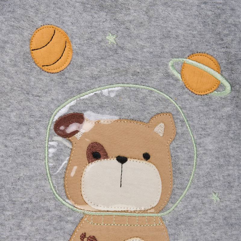 Body Bebe Manga Larga Con Aplique Bordado. Confeccionado En Plush Combinado Con Interlock. Una Prenda Calentita Y Cómoda Para Tu Bebé. Con Broches Pañaleros Para Facilitar El Cambio De Pañales. Color Gris. De 0 A 3 Meses
