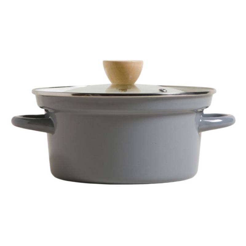 Cacerola Enlozada Gris Con Tapa De Vidrio Y Madera 20 Cm