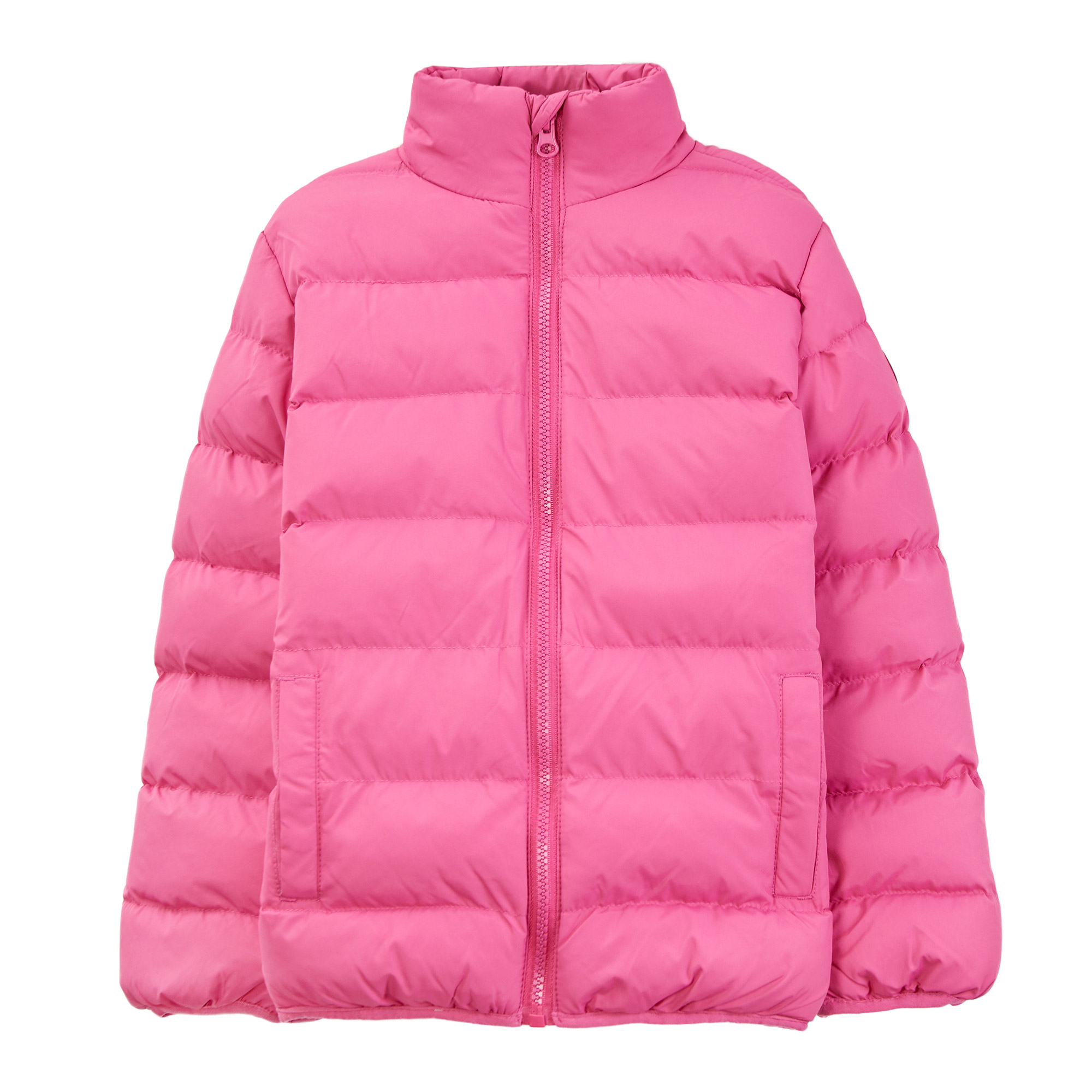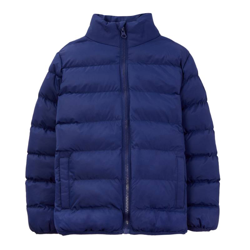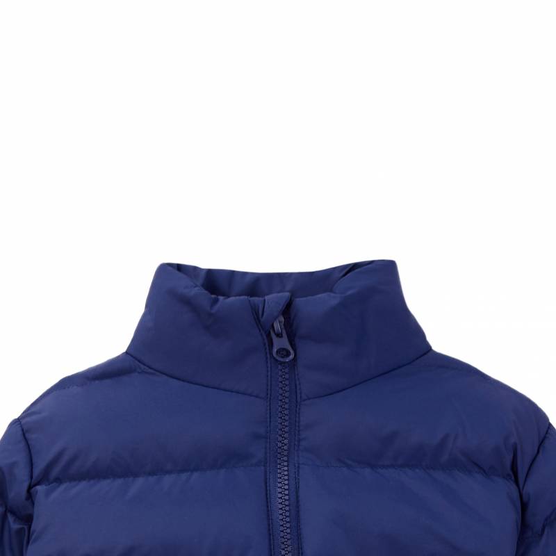 Campera infantil básica. Largo a la cadera, con cuello, elástico en puños y ruedo y forrería a contratono. Matelaseada con bastones De 6 cm es una prenda liviana con relleno de vellón siliconado.