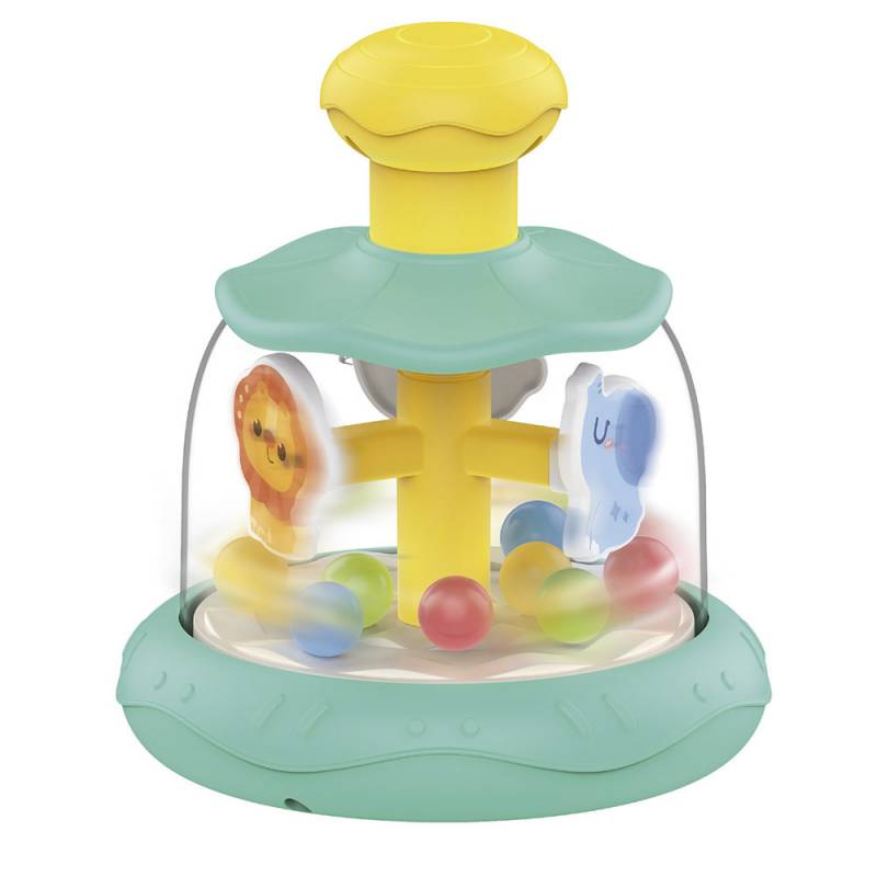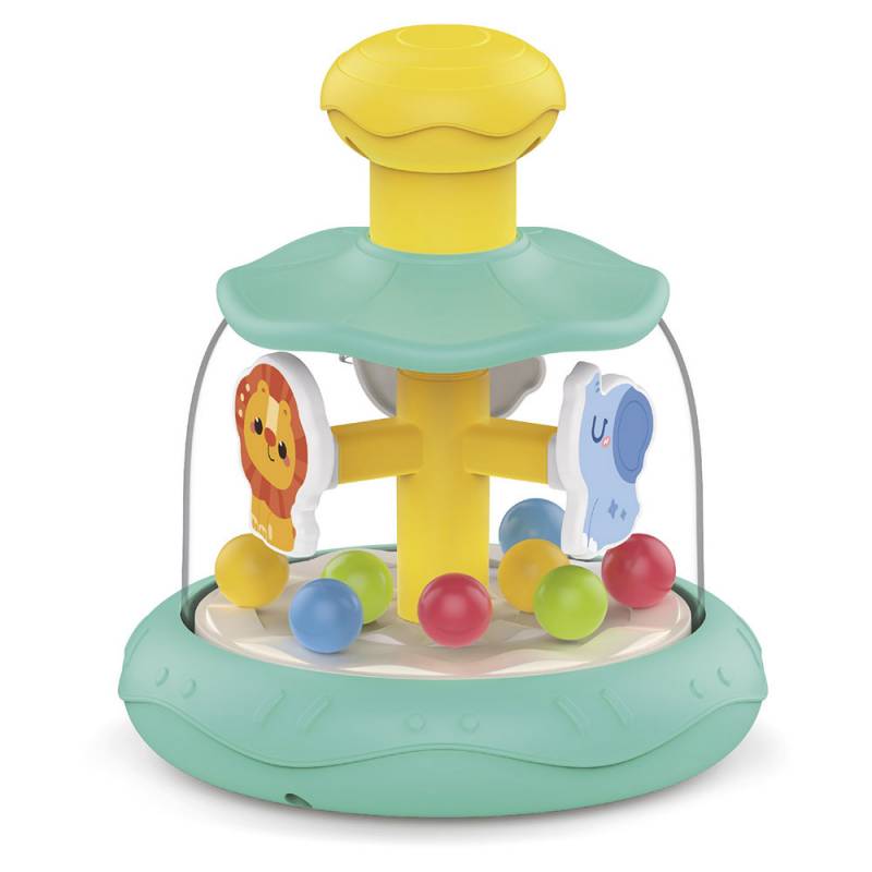 Carrusel divertido con bola giratoria interactiva de temática de caballos. Presiona y observa cómo las pelotas giran en un diseño colorido y atractivo que capta la atención de tu bebé.