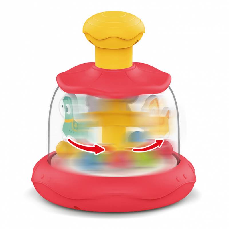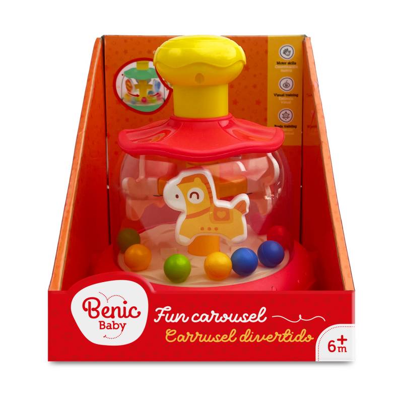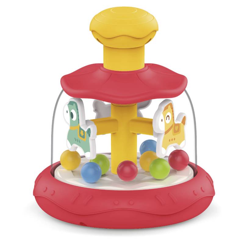 Carrusel divertido con bola giratoria interactiva de temática de caballos. Presiona y observa cómo las pelotas giran en un diseño colorido y atractivo que capta la atención de tu bebé.