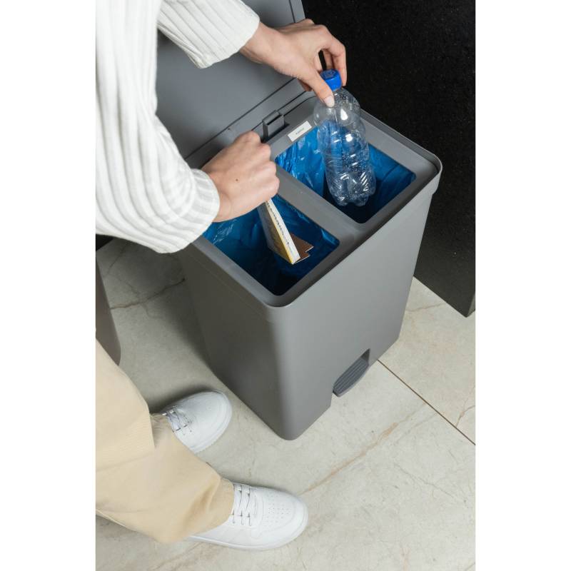 Basurero Trium 30L Con Pedal Doble Compartimiento Gris