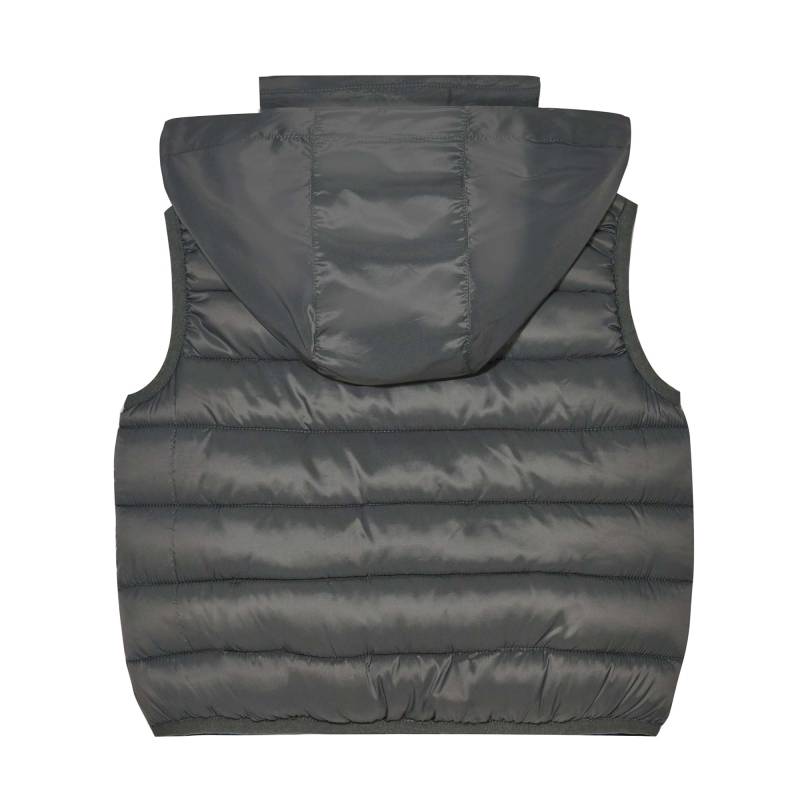 Chaleco bebe de abrigo con capucha. Tiene bolsillos laterales.
