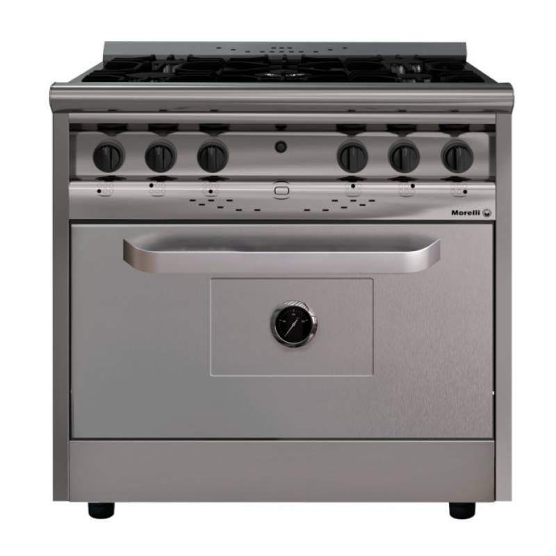 Cocina Morelli Forza de 87 cm, acero inoxidable, puerta de acero con 5 hornallas. Ladrillos refractarios