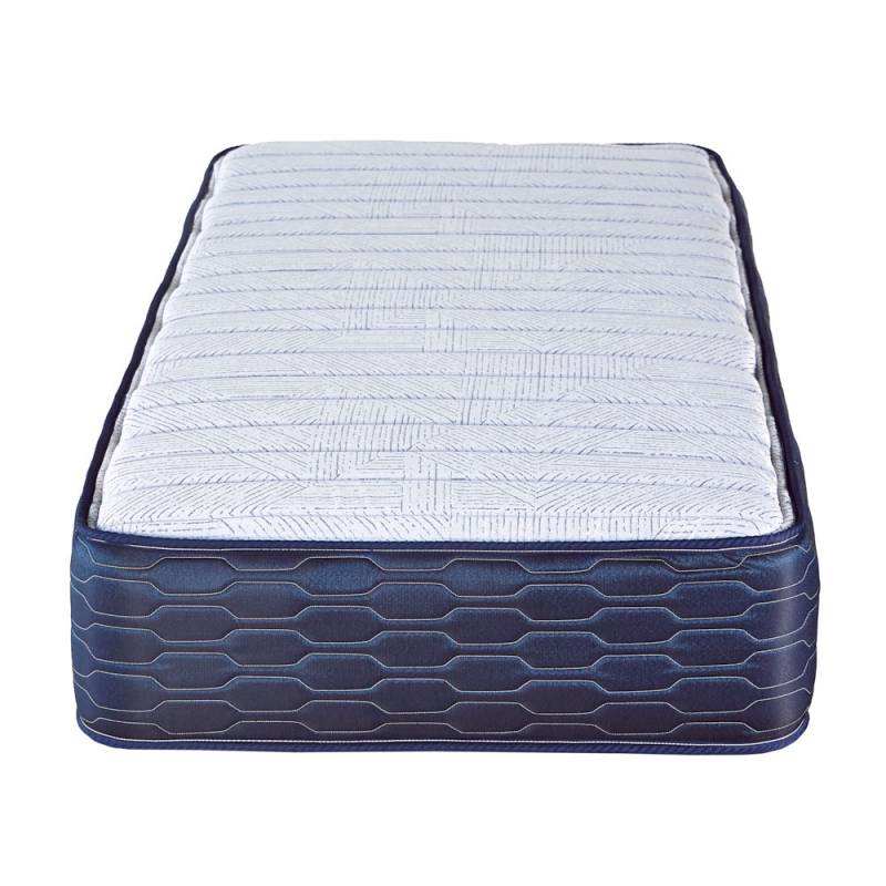 El colchón Bluestar brinda noches repletas de dulces sueños. Creado con materiales de calidad, como sus resortes, marcos perimetrales y estabilizadores de acero, que aseguran una experiencia saludable y duradera. Tela de jackard Su tela es fuerte y firme. El diseño matelasseado superior brinda diferentes tensiones sobre los tejidos lo que permite disfrutar de tres versiones de confort: un toque suave, medio y firme. Por su diseño, permite el uso de ambos lados, maximizando la vida útil del colchón. Resortes con marco y estabilizadores Sus resortes continuos de acero de alta resistencia actúan como una unidad estructural de gran firmeza. Asegura un soporte ideal para cualquier persona, ya que ofrece una mayor estabilidad y se adapta a todas las partes del cuerpo. Su doble marco perimetral de acero y sus estabilizadores aportan mayor firmeza en los laterales, amplían el área para el descanso y prolongan la vida útil del colchón.