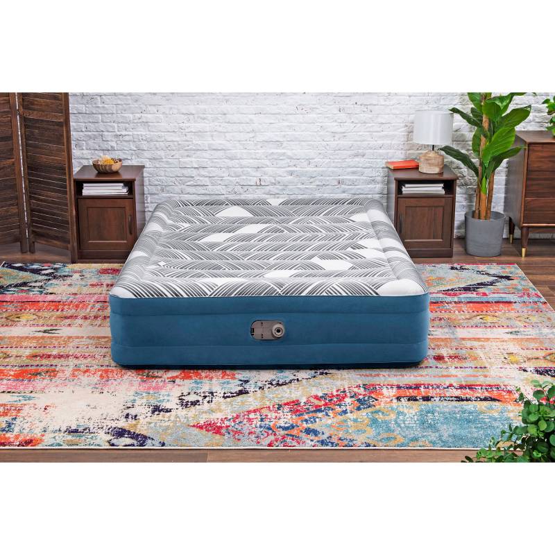 Para completar este colchón hinchable, la parte superior está cubierta con el estampado Fashion Flock. El suave material está recubierto de un estampado elegante y moderno que realzará el aspecto lujoso de esta cama. Encaja a la perfección en la habitación de invitados, el salón o cualquier otro lugar donde necesites un espacio extra para dormir.