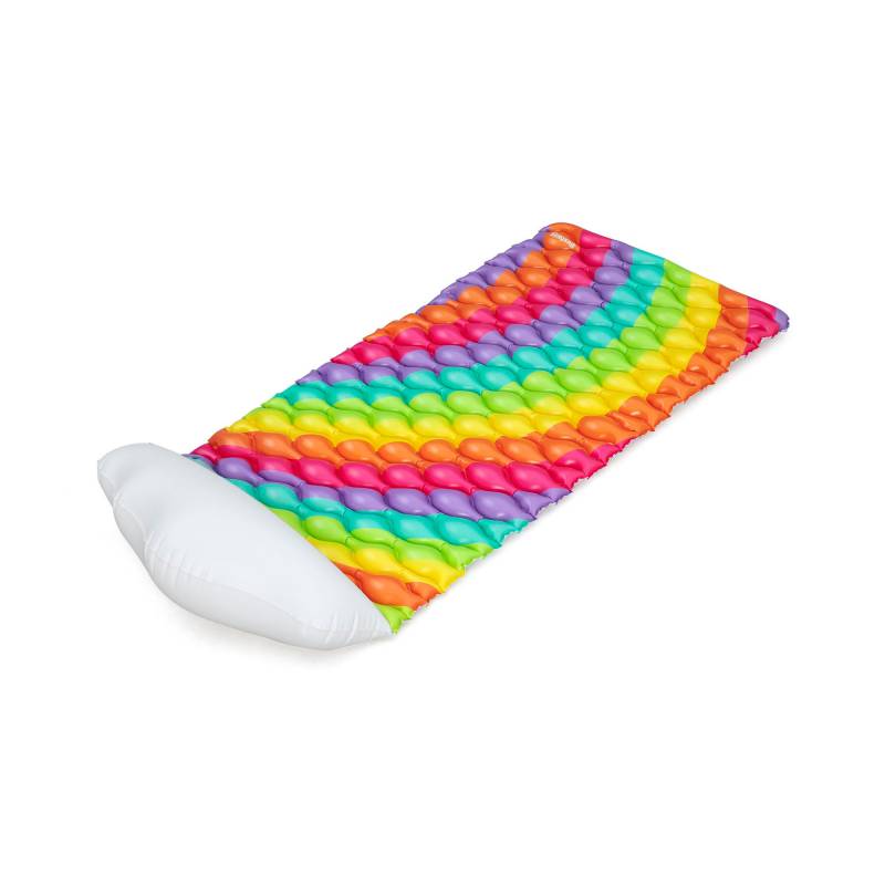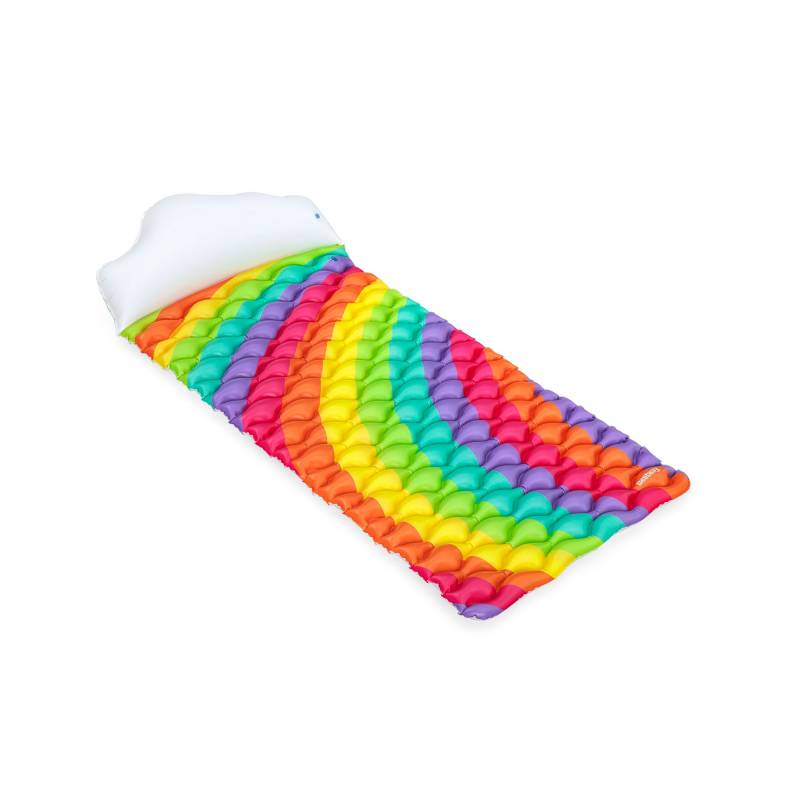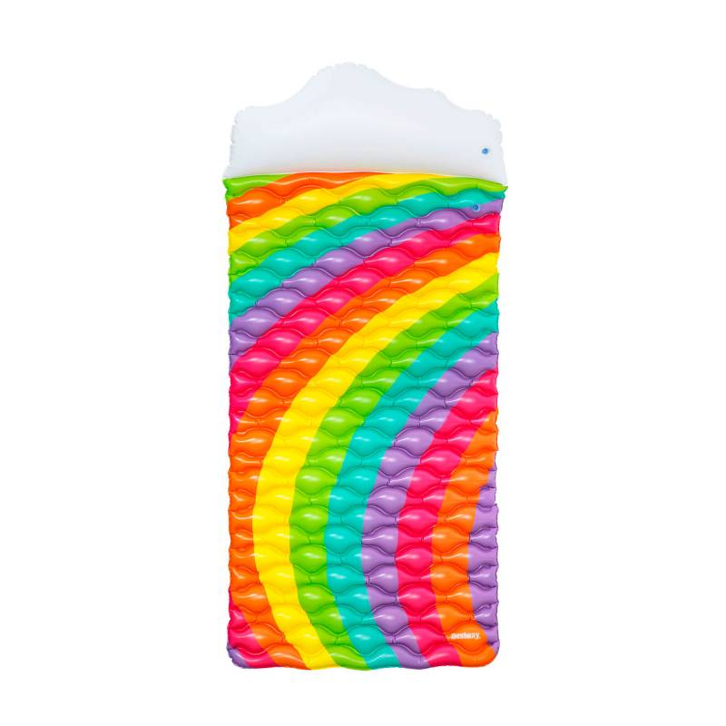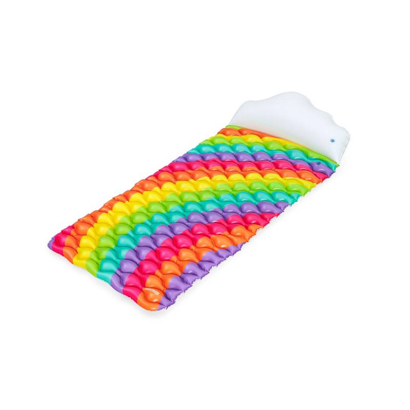 La colchoneta hinchable Rainbow Dreams™ de Bestway® está hecha para cumplir tus sueños veraniegos. Perfecta para adultos, su cómoda almohada en forma de nube te ayudará a reposar la cabeza para que te sientas como si estuvieras flotando por el cielo y disfrutas del sol. Además, su brillante estampado inspirado en el arco iris te hará sonreír mientras disfrutas de un relajante día en el agua. La colchoneta Rainbow Dreams se enrolla para transportarla cómodamente y almacenarla con facilidad cuando acaba la temporada. ¡Te encantará usar la colchoneta Rainbow Dreams durante muchas temporadas!
