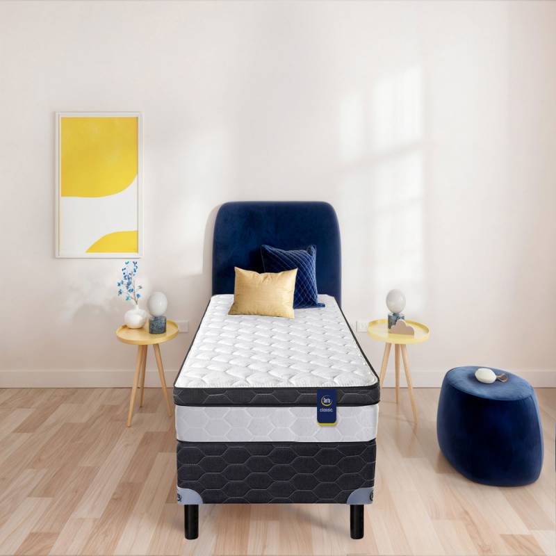 El sommier y colchón de resortes Nixa de 1 plaza de Serta es un producto innovador y sustentable, gracias a la incorporación de la espuma ecológica Eco Zoned, que combinada con una estructura de resortes bonnell brindan el soporte justo. Caracterizado por su exclusivo europillow, suma una capa extra de confort para una mayor suavidad al recostarse. Además, incluye el sommier que aporta una sólida estructura de materiales de alta calidad, brinda estabilidad y ayuda a prolongar la vida útil del colchón. La tela antideslizante de su superficie permite contener el desplazamiento del colchón e impedir interrupciones durante el sueño. Serta es una marca reconocida por ser pionera en la innovación del sueño durante más de 90 años, llevando productos de calidad a más de 150 países en todo el mundo. Es sinónimo de confort y soporte superior, con los estándares de calidad más altos del mercado.
