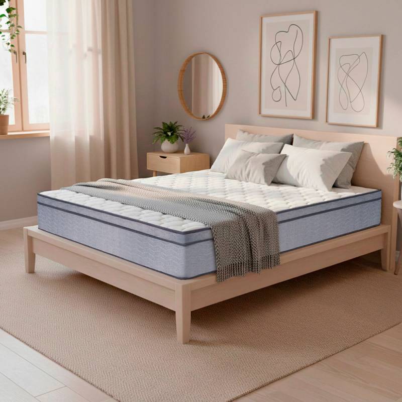 El conjunto de colchón y sommier de dos plazas Anubis combina a la perfección un soporte confiable y un alto grado de adaptabilidad. Cuenta con un sistema clásico de resortes y confortables capas de espumas de alta densidad que le permiten brindar un descanso reparador. La tecnología Europillow agrega un plus de confort sumando una capa extra de espumas especiales y el tejido piqué de su superficie completa el mix perfecto de suavidad y comodidad.