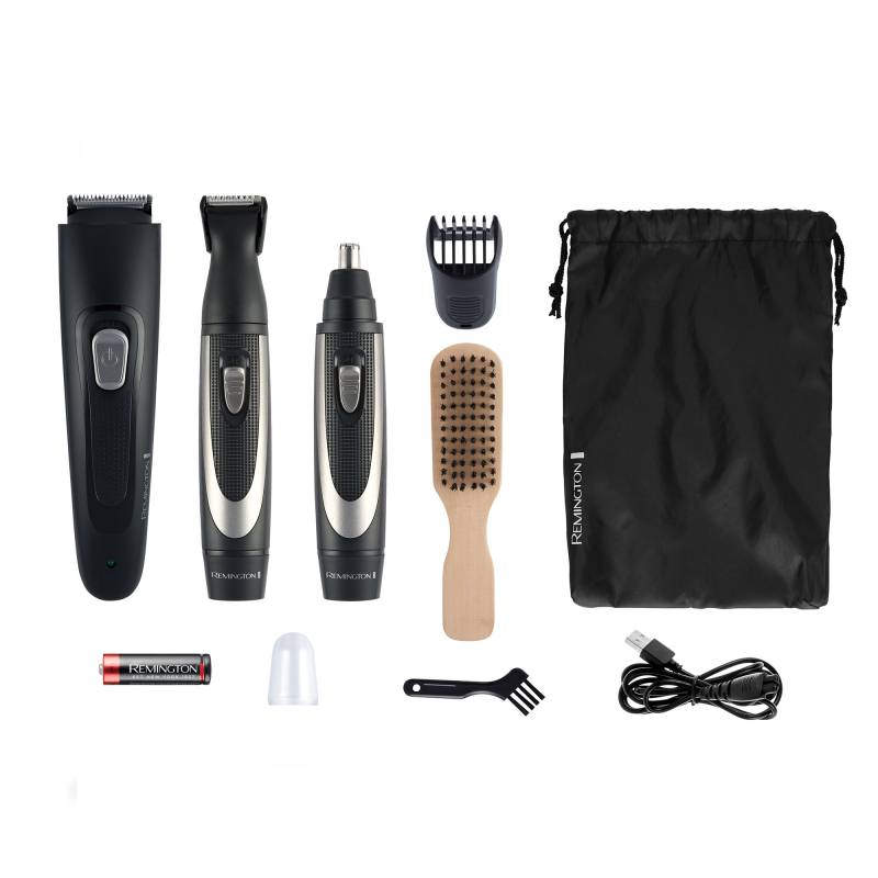 Domina tu estilo con el Kit Recortador de Barba Remington The Works, MB906. Equipado con cuchillas de acero autoafilables, ofrece un rendimiento preciso y duradero. Peine para barba ajustable con 9 longitudes te permite personalizar tu look, mientras que la recortadora de precisión y el cortador rotativo para nariz y oídos aseguran un acabado perfecto. Disfruta de hasta 45 minutos de uso inalámbrico, con carga USB y accesorios que funcionan con pilas. Incluye cepillo para barba y estuche de almacenamiento y garantía de 2 años