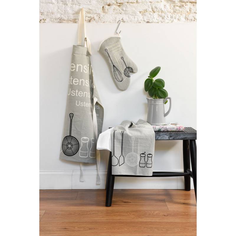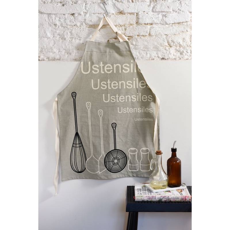 Delantal de cocina compuesto de 100% algodón-tusor. Medidas aproximadas: 80x60 cm. Cuidados: Lavar a máquina con agua fría con colores similares y no centrifugar. No usar lavandina. Usar plancha media, no planchar sobre estampa/bordado. No limpiar en seco. No dejar en remojo ni torcer.