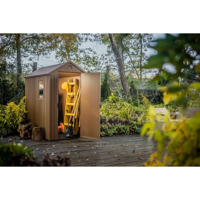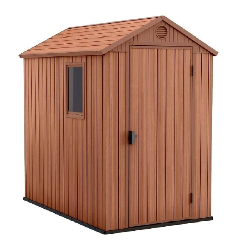 El Depósito Darwin es el último modelo de Keter compuesto por paneles de extrusión de 16 mm, fabricados con la nueva tecnología llamada EVOTECH, es decir los paneles está compuestos de polipropileno y composite mineral, en lugar de derivados de la madera (composite + resina). Los paneles Evotech son un desarrollo propio de Keter y un resultado de tecnologías de producción y materiales; los cobertizos fabricados con este material, son fáciles de montar, permiten la entrada de luz natural, ventilación, tiene opciones de bloqueo y resistencia que se basa en paneles de ingeniería inteligente y refuerzo de acero. Esta caseta tiene un atractivo diseño que recrea el aspecto y la sensación de la madera natural, permite soportar una carga de 75 kg / m², es fácil de transportar y manejar, se adapta a la cajuela trasera del automóvil; garantiza menos espacio en tiendas y bodegas, está diseñado para soportar las inclemencias del tiempo, no necesita mantenimiento, y gracias a sus materiales de calidad, no se pelará, pudrirá ni se desvanecerá el color.