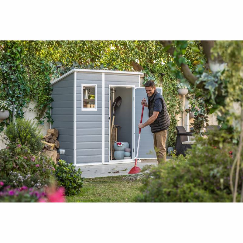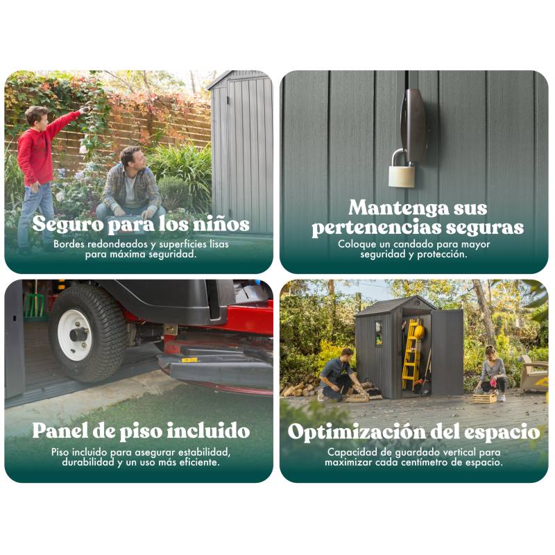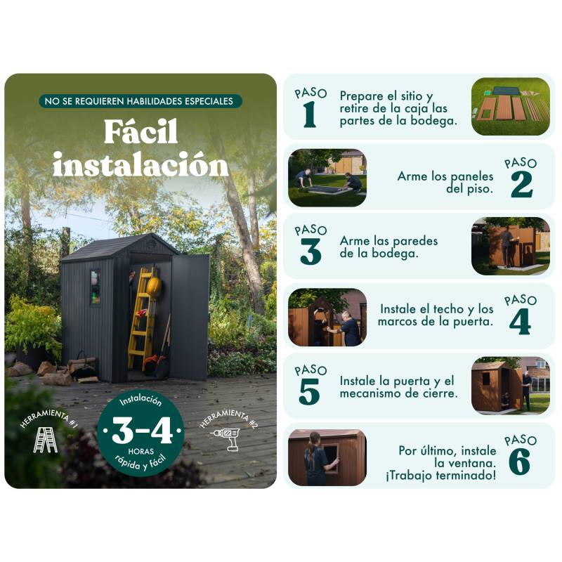 Esta muy bueno. El armado es fácil con la guía, pero la colocacion del techo cuesta un poco. Amplio espacio interior. Sugiero colocar tablas sobre el piso para evitar roturas si van a a guardar cosas pesadas.