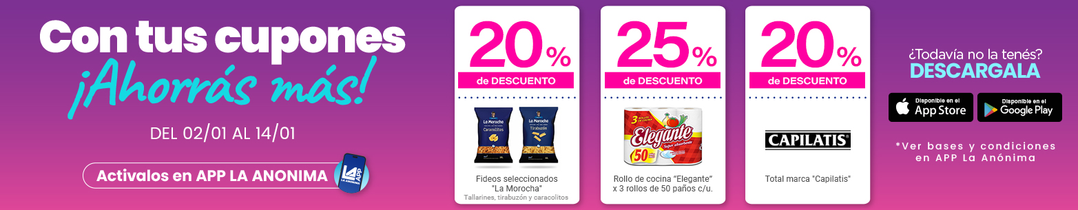 Sociedad Anónima Importadora y Exportadora de la Patagonia CUIT N° 30-50673003-8 - Av. Leandro N. Alem 1134, piso 8°, CABA. Email: opinion@laanonima.com.ar   Los precios online y los planes de financiación para los productos presentados/publicados en  https://www.laanonima.com.ar/  son válidos exclusivamente para la compra Online.