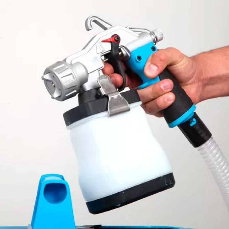 Fácil limpieza con enjuague del depósito de pintura con agua.
